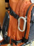 My backpack is not bulky – it is compact. A travel backpack should not have a bunch of loose straps to catch on things as you pass by them. Originally my backpack had long straps and loops that you could use to attach hiking gear to the outside of the backpack. I chose to remove these loops and shorten the straps. I also use safety pins to pin the loose straps in place and prevent slippage. A good travel backpack is also secure. You need to strike a healthy balance between accessibility and security. Instead of the standard zipper pulls I chose to replace them with key rings so that I can easily attach a lock (for security) or carabiner (for accessibility).