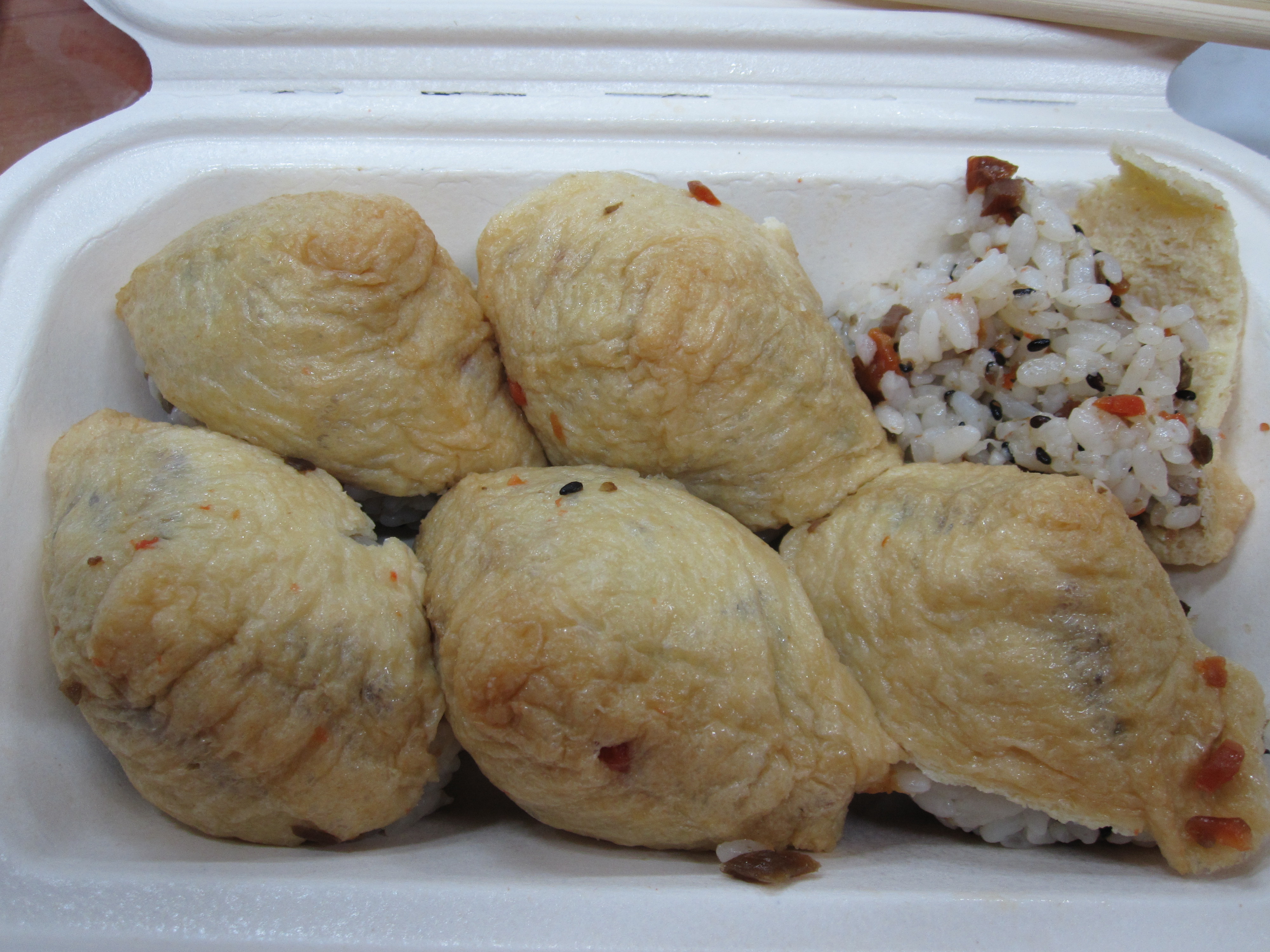 Yoo-Boo-Cho-Bap. This is one of Jacob’s favourites. A tofu shell stuffed with rice and other unknown things.