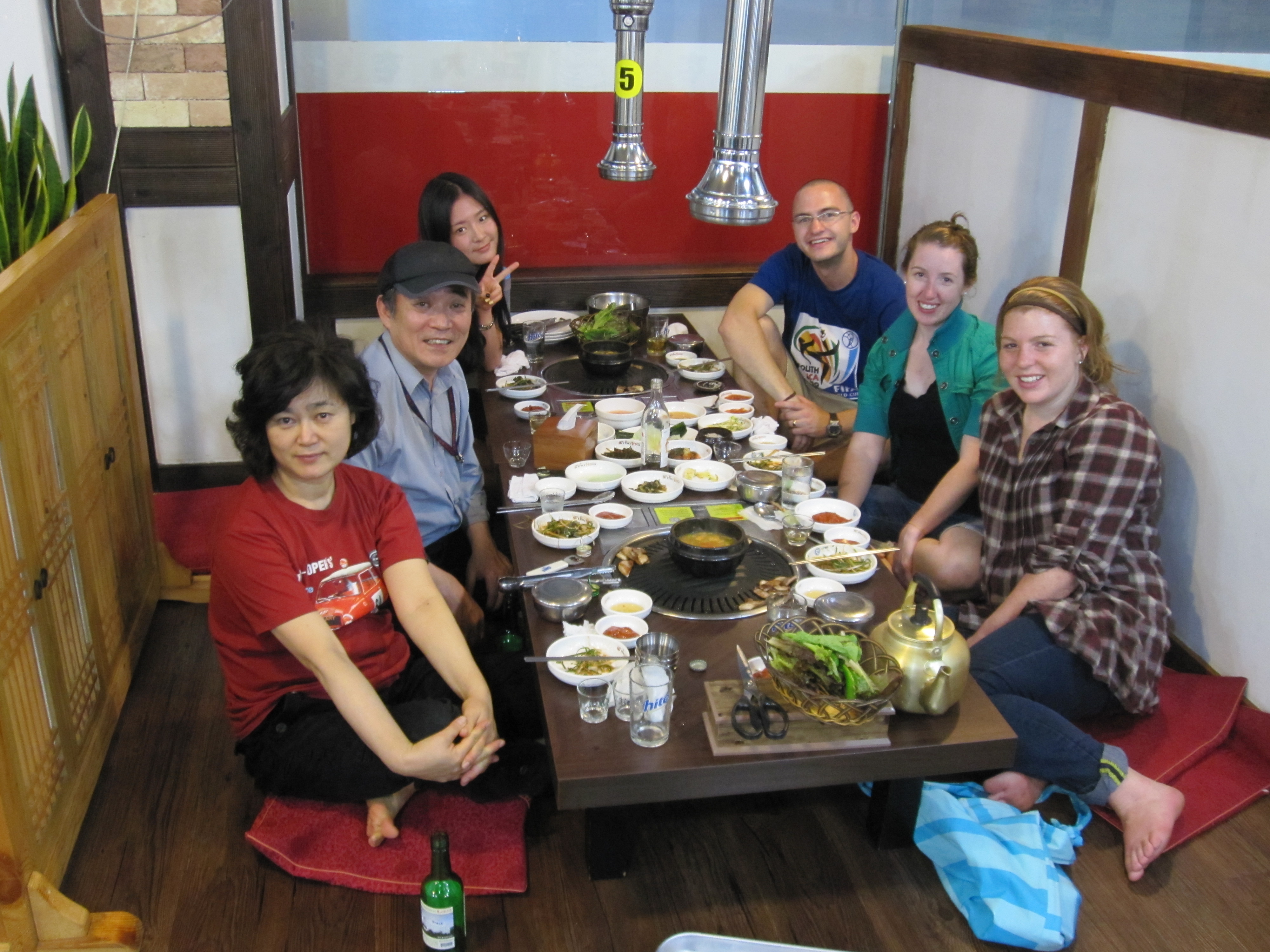 Last night Jacob, Kayla and I had Sunday family dinner with our Korean family: Mr. Hur (aka Gimbap man), his wife and daughter Gloria. We ate at one of the local Samgyeopsal restaurants where we had roasted duck, and two different kinds of pork. After finishing our meal we headed to the Norae-bang (singing room) around the corner. While this isn’t our typical Sunday dinner lineup it certainly was appreciated and one of the highlights of my time in Korea.