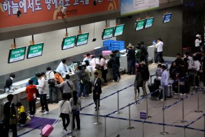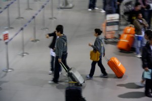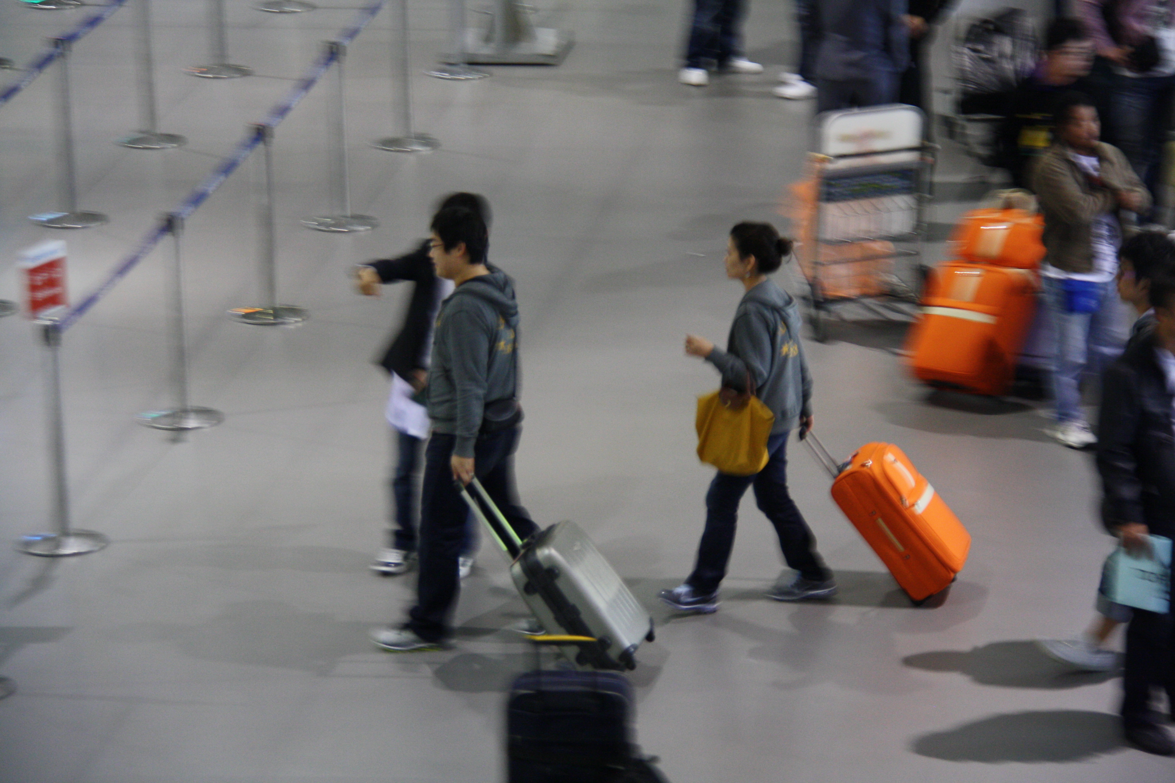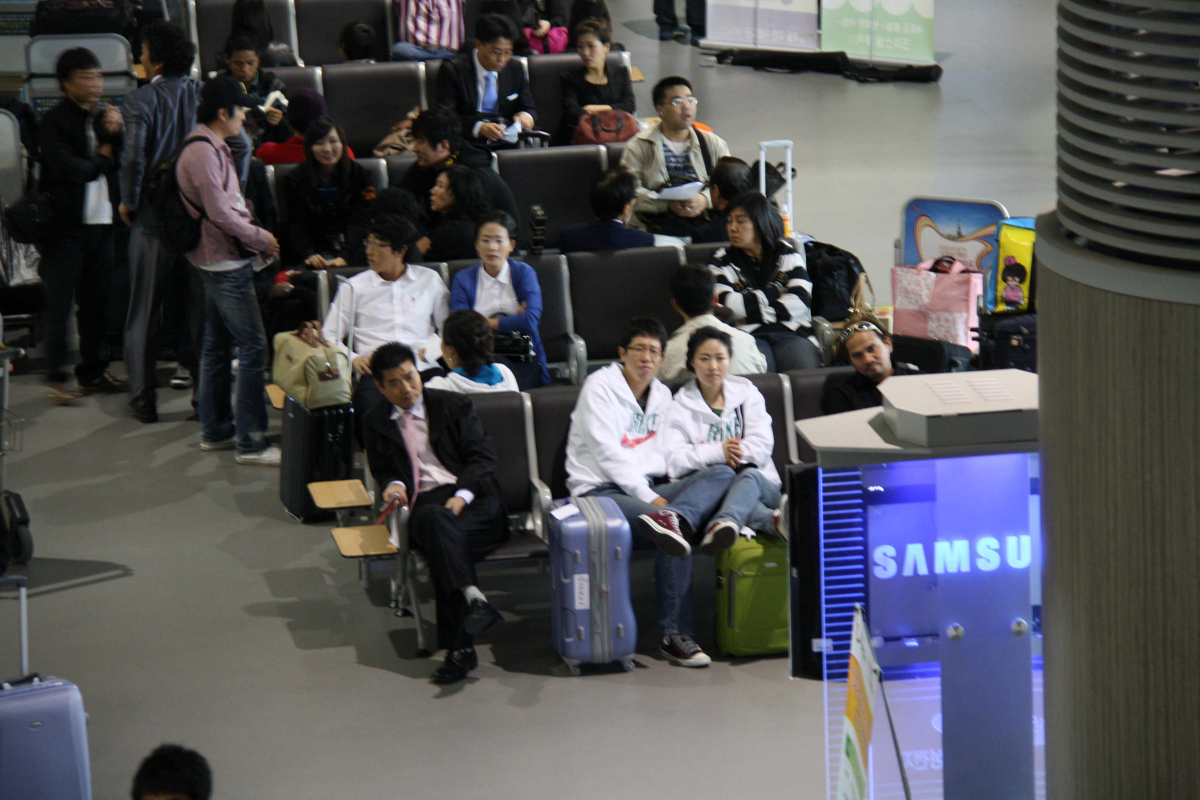A very popular fashion trend in Korea is ‘couple’s wear’. You’ll see it in most stores where clothing will come in both a man’s and women’s version. This is particularly popular at the airport for honeymooners, at the movie theatre for dates and in shopping areas on the weekend. It’s so popular that friends of ours have made it into a game, similar to punch-buggie. See couples wear and punch your friend. There are varying degrees of couples wear, sometimes it’s just a t-shirt but the really serious ones are wearing identical clothes down to the shoes. While visiting the Busan airport, we did some reconnaissance and were able to get the following pictures. Can you spot the couples?