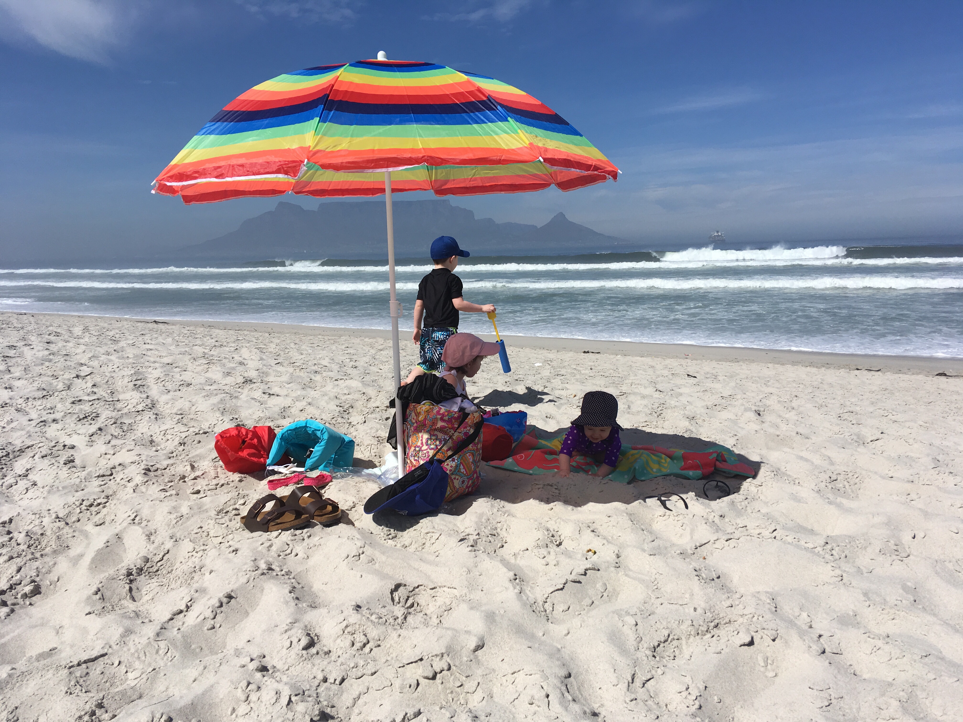 We set up camp at Bloubergstrand again. The kids had fun with their squirt guns, avoiding the scary water, eating sand and seashell hunting. I had fun sitting in the sun looking at table mountain. Jacob probably enjoyed himself too.