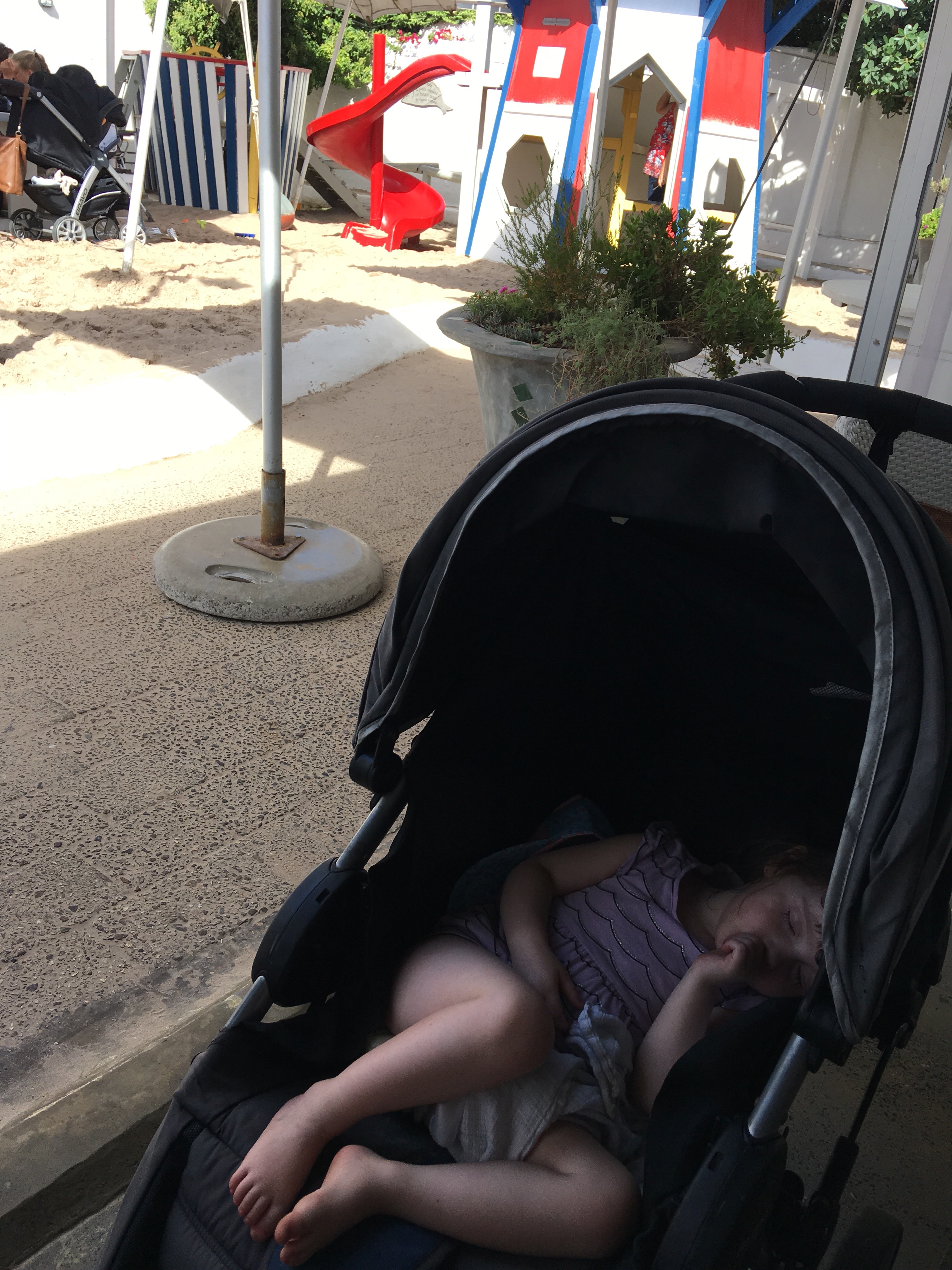 Lunch today was at Damhuis. This is one of the most fantastic restaurants I’ve ever been to. The food was amazing, it overlooks the beach and has an epic play area. Right in the middle of the restaurant they have a sandy section with a play ship, lighthouse and all kinds of sand toys. Guys, the kids played in there for over three hours while we lunched. Three hours! They both found older kids that adopted them for the afternoon and had a great time. Now if we could just find someone to adopt Nora 😂