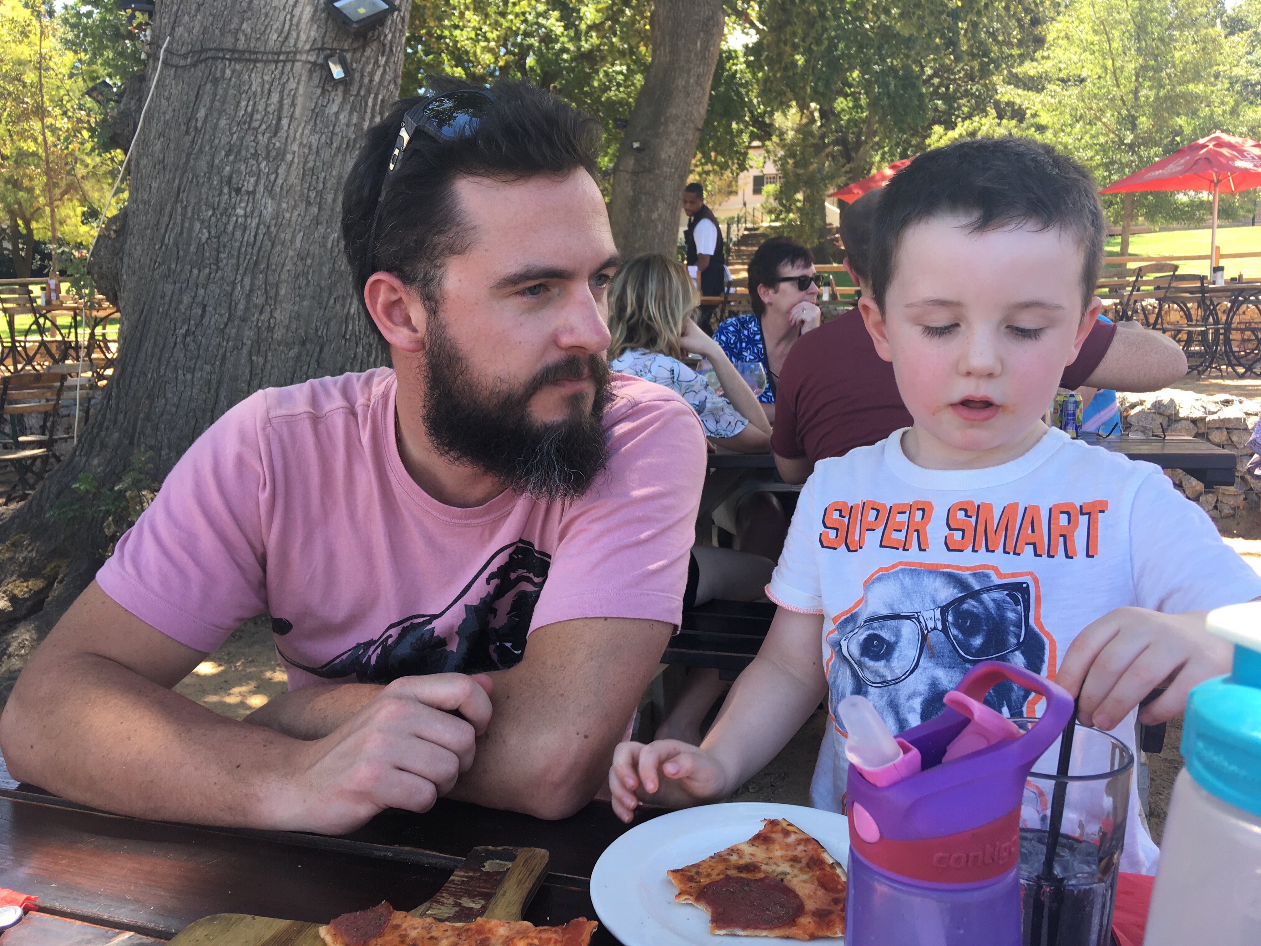 We left the lion park after a very painful hour and headed to the Spice Route. We visited this place the last time we were here and loved it. Thankfully there was a nice breeze and it clouded over later in the day so we made quite an afternoon out of it. We had some lunch, sampled some wine on tap, had a coffee, played at the park, went to the chocolate factory and ended with a beer. Essentially we gained five pounds and redeemed the day.