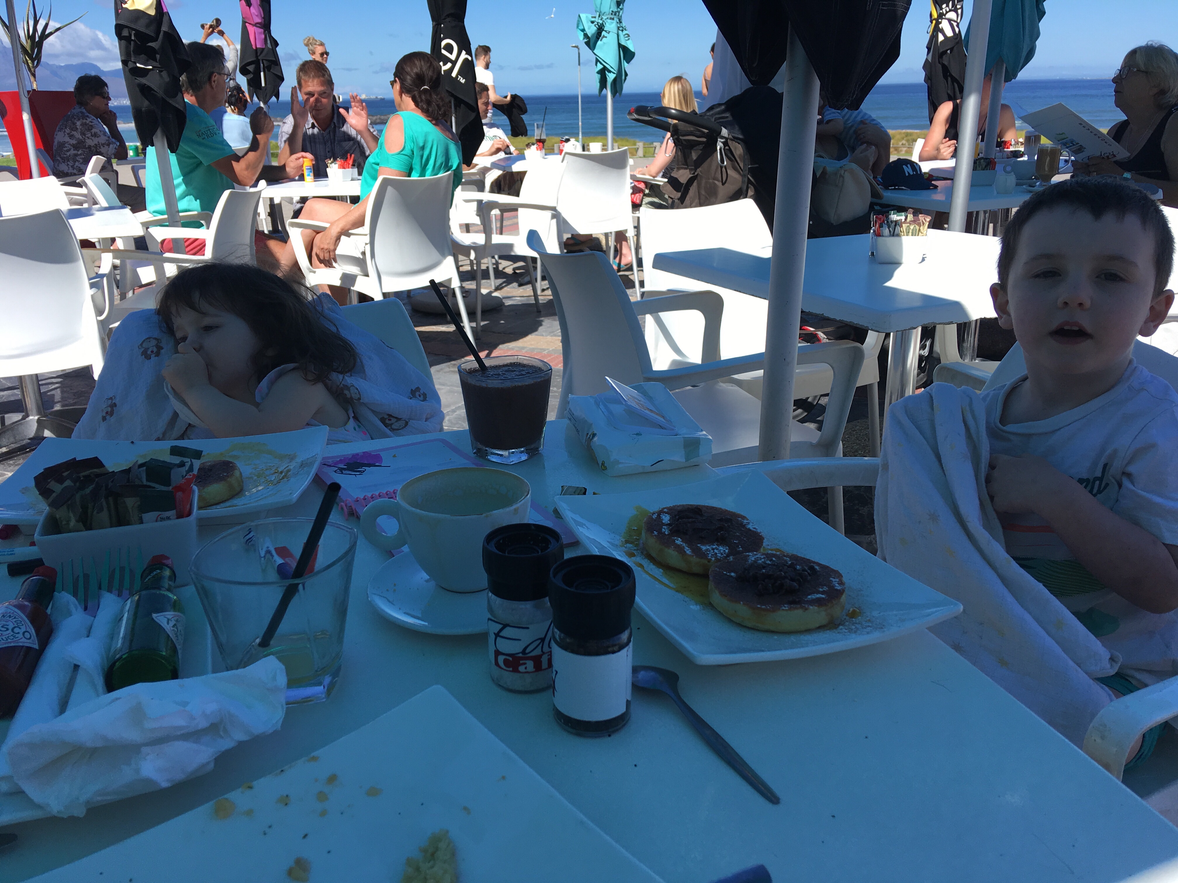 Thursday we hired a cleaning lady to come in and disinfect the cottage. She spent the entire day scrubbing this place so we had to come up with some ways to stay busy outside the cottage. It’s just not big enough to hold everyone. We headed to Eden on the Bay for breakfast where everyone whined for an hour before we finished eating. With still almost an entire day to kill we headed into the city to find a relatively low energy activity. We gave Charlie the choice to go on the V&A Ferris wheel, Green Point Park or the Blue Train, he chose the train. All three kids really loved the train actually and for three blissful minutes there was no whining. Luckily it takes about 35 minutes each way to drive into the city so we successfully burned almost an hour and a half.