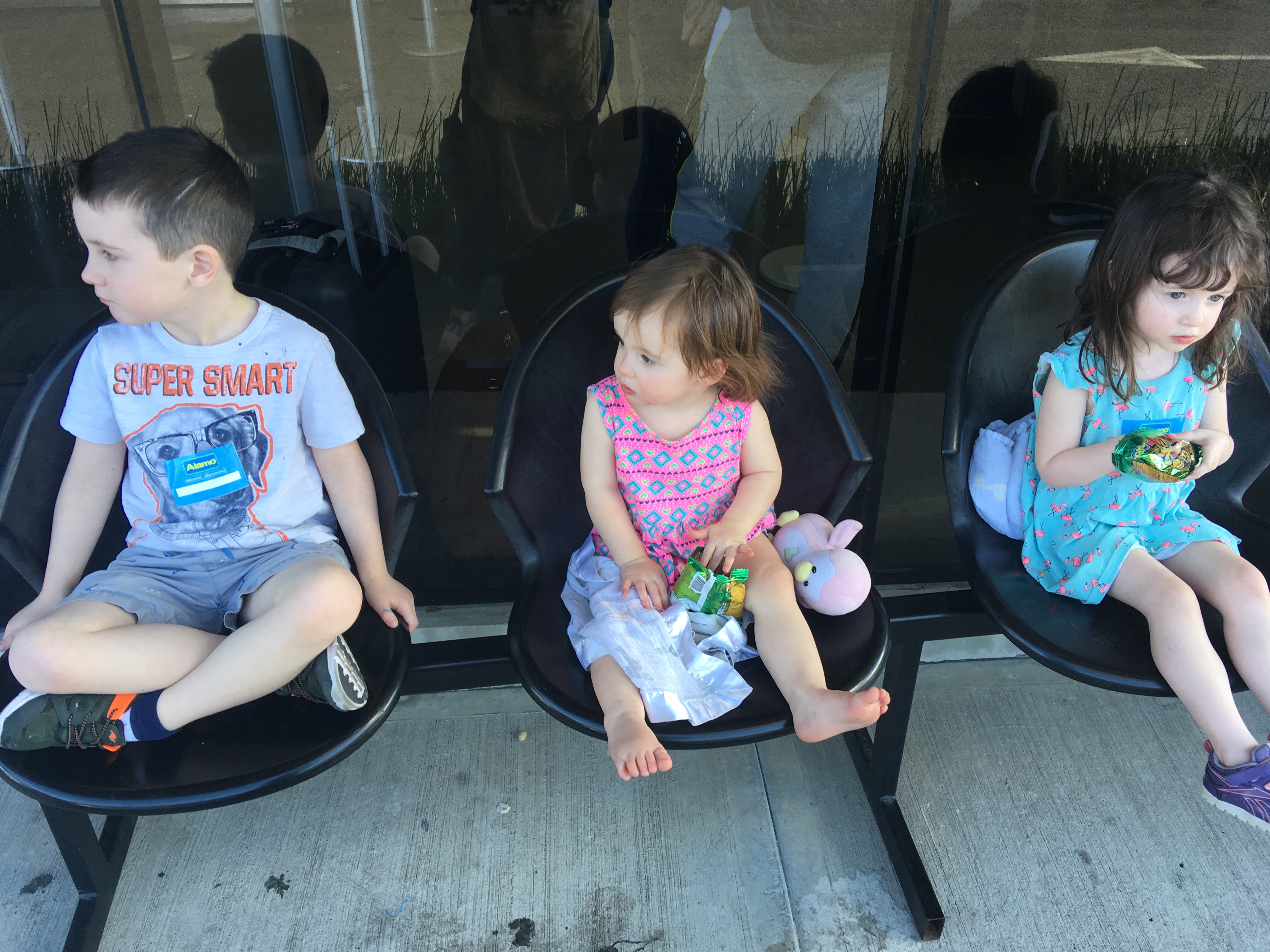 We had a relatively easy flight path. Charlottetown to Montreal with an overnight before heading to CR this morning. The kids all fell asleep without incident in the hotel room last night – three kids under 6 – that’s essentially a miracle. We were up and out at 520 this morning; a record for Charlie and timed our morning through the airport perfectly. The kids did incredibly on the flight, even Nora! 8 hours on a plane and no meltdowns or tears – miracle #2.