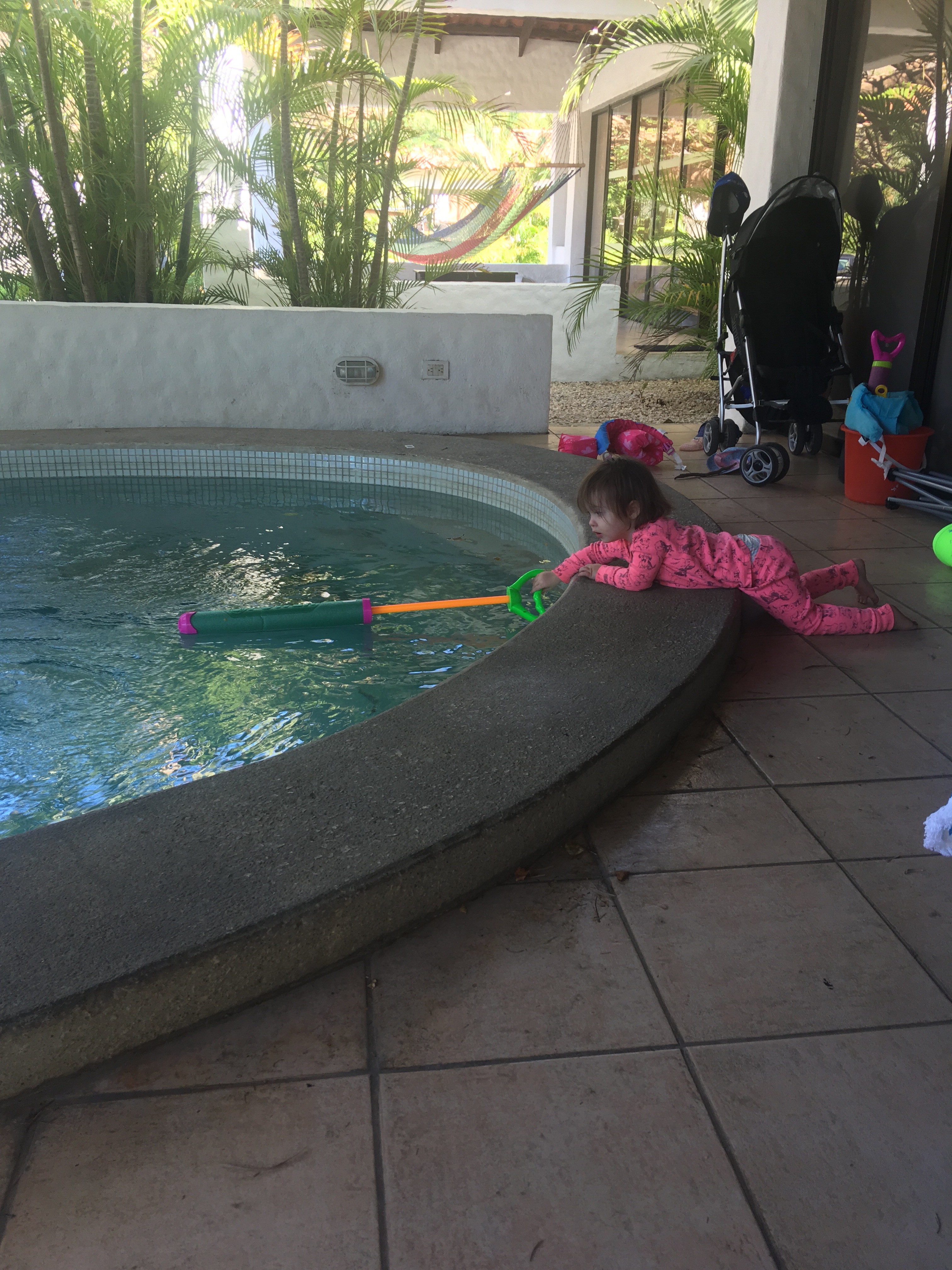 Aside from the two near heart attacks today it was a pretty chill day. We headed back to the pool this morning where again only two of three children enjoyed themselves. Both girls had a nap after lunch and Charlie and I played catch – which is impressive since neither of us has any hand eye coordination.