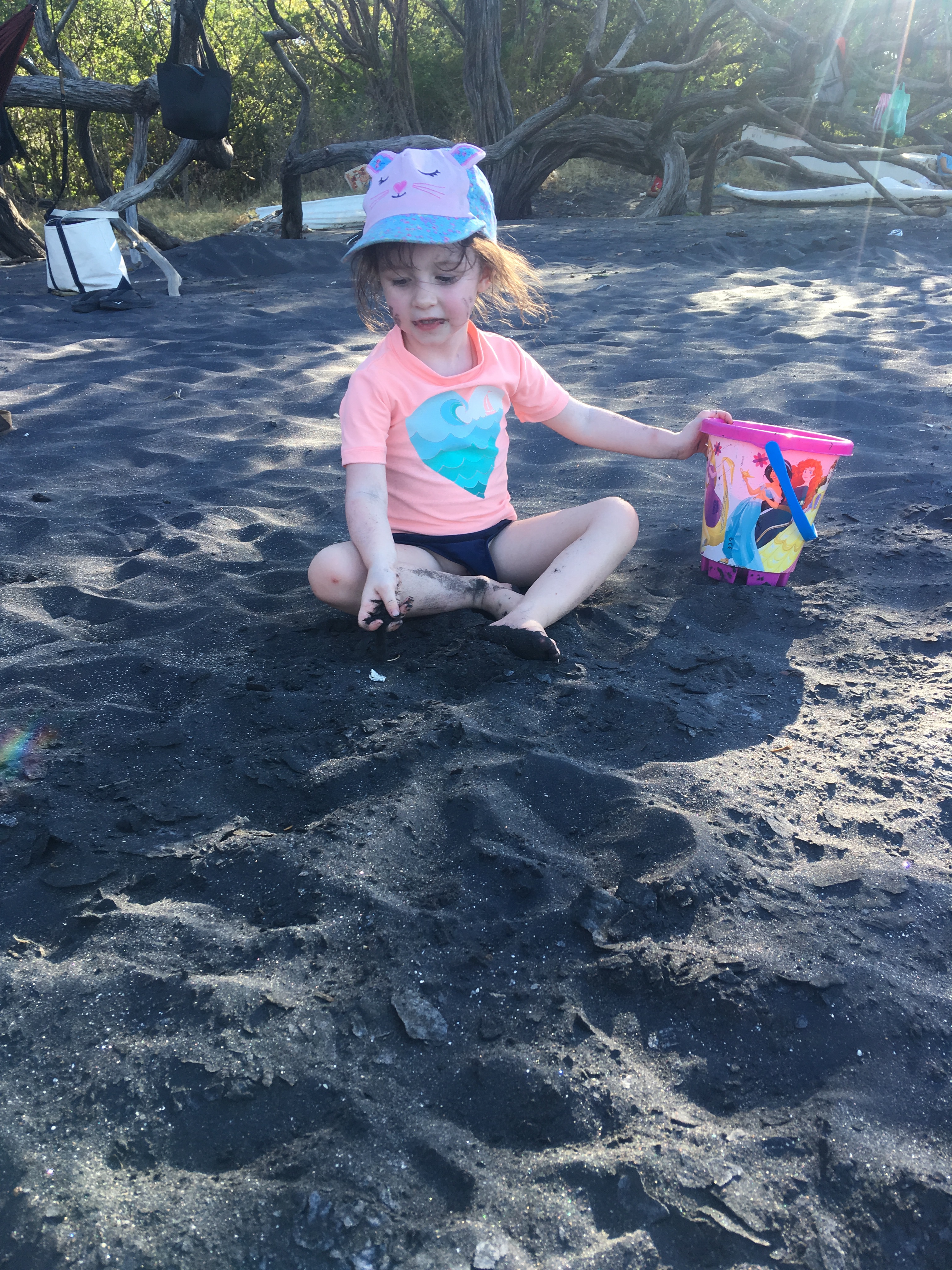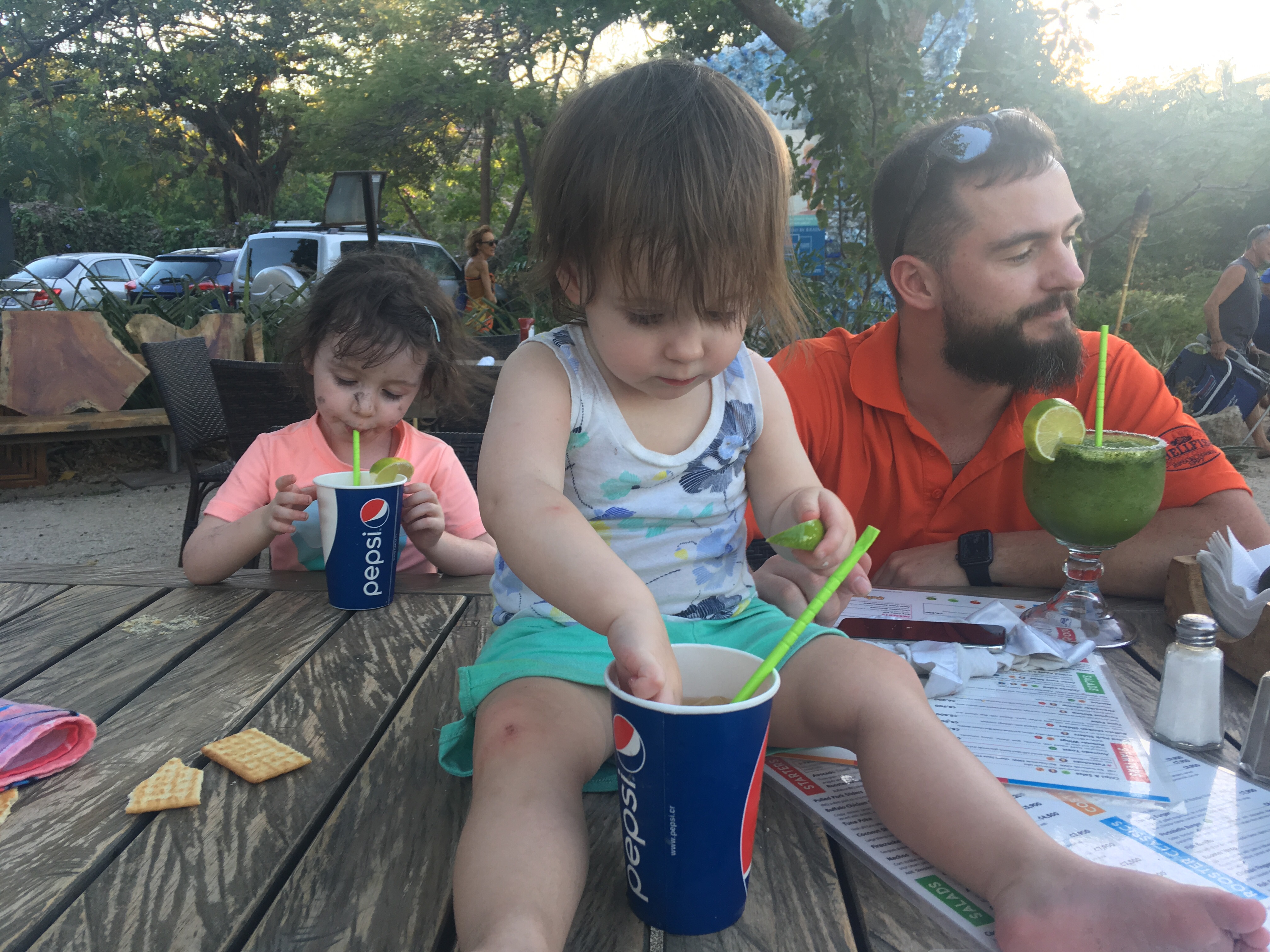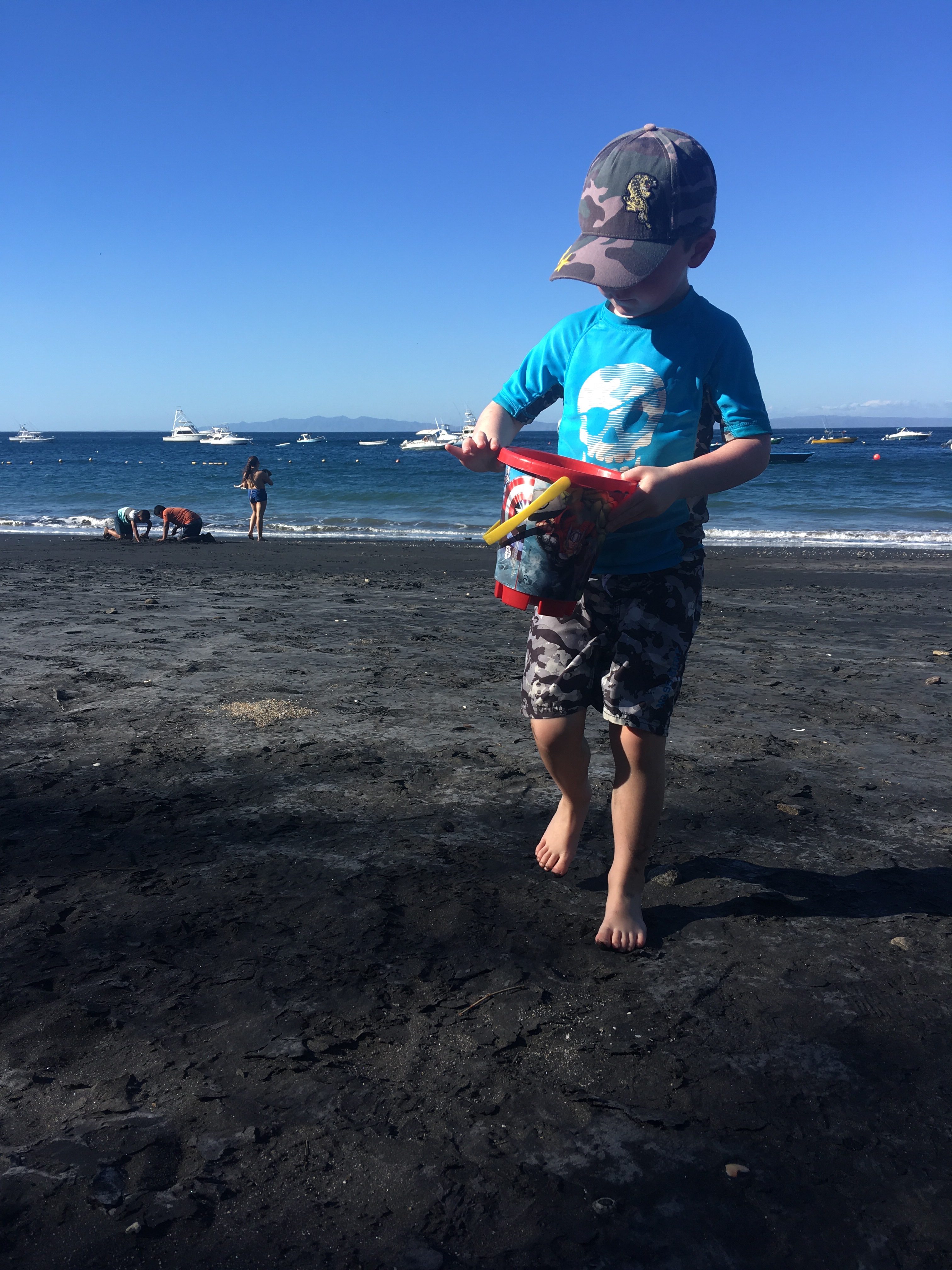 After nap time we headed to Playa Ocotal – the beach about 7km away to see how it compared to our local beach. It’s a black sand beach (from the volcanic activity) with cool trees reaching out over the sand. The sand was super cool, it’s soft and squishy and full of shells and pieces of coral. Everyone enjoyed the last few hours of sunlight on the beach before we had dinner at Father Roosters (another beachside restaurant).