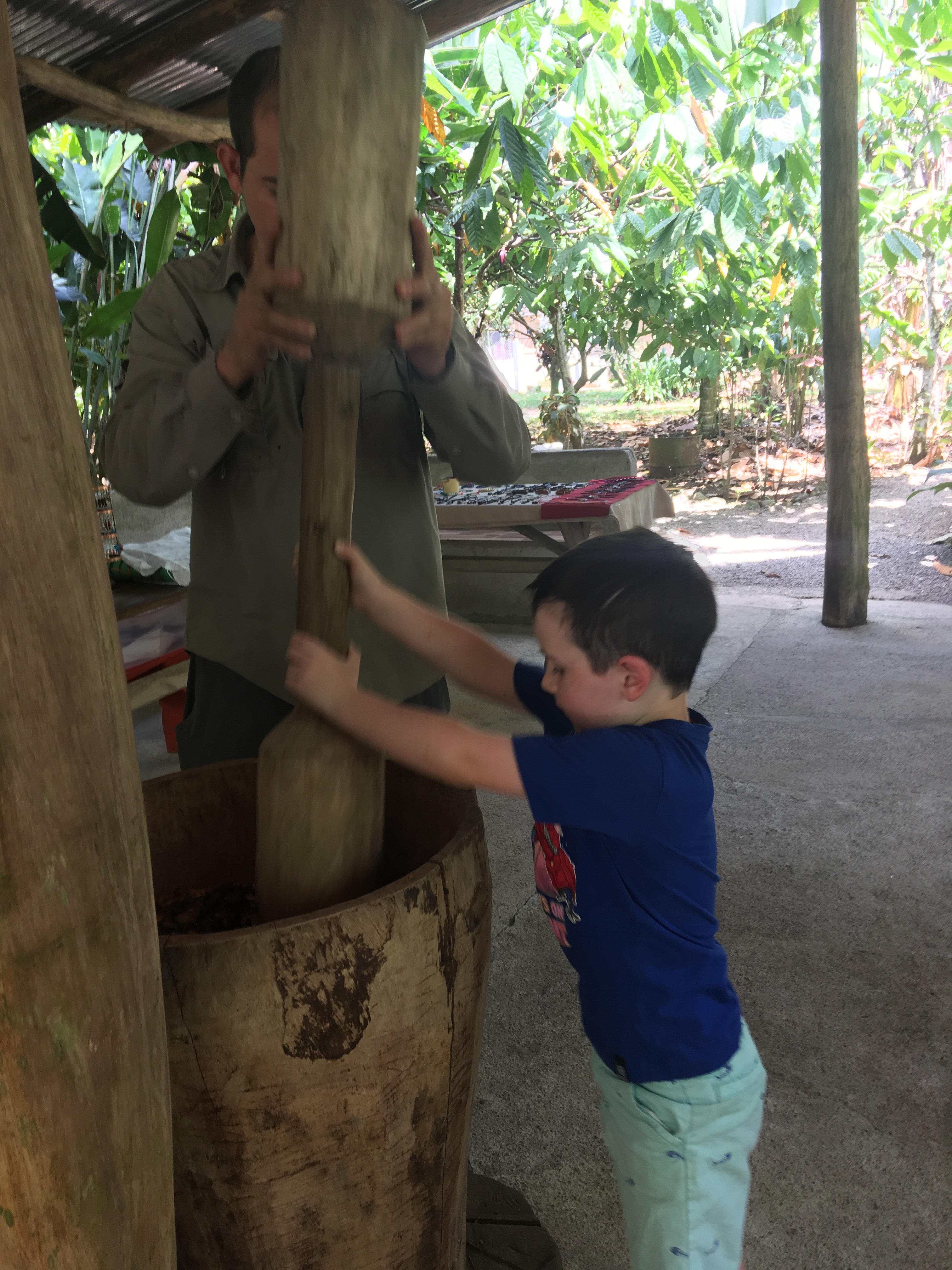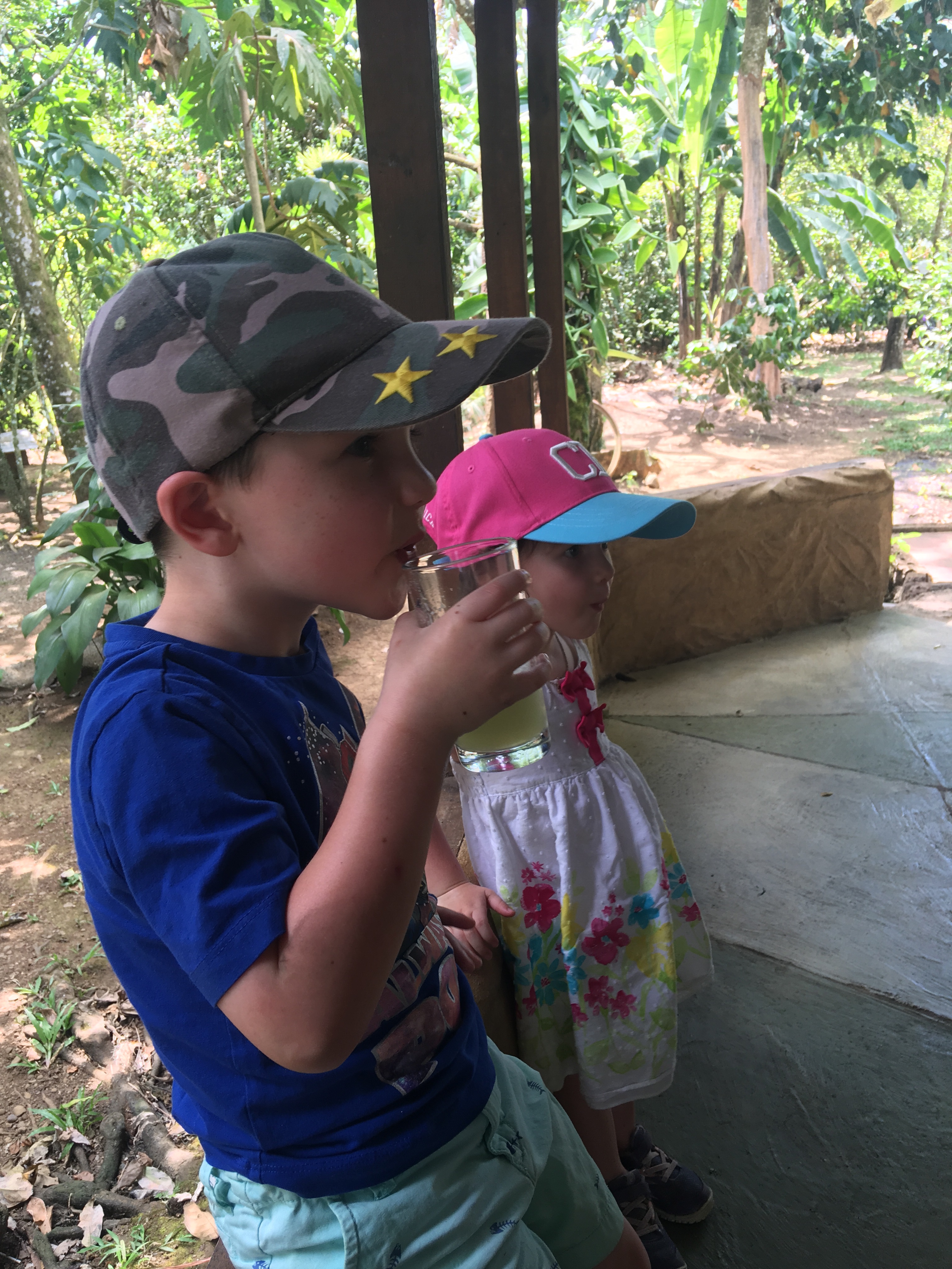 We had an incredible day today. We had originally planned to visit the volcano today but when we woke up it was quite cloudy and they were calling for possible showers. Since it’s going to be a challenge to get the kids to hike the trail we figured we would wait and hope for better weather since we have a few days. We had seen signs for a chocolate tour only a couple of kilometres from our place so we decided to check that out.