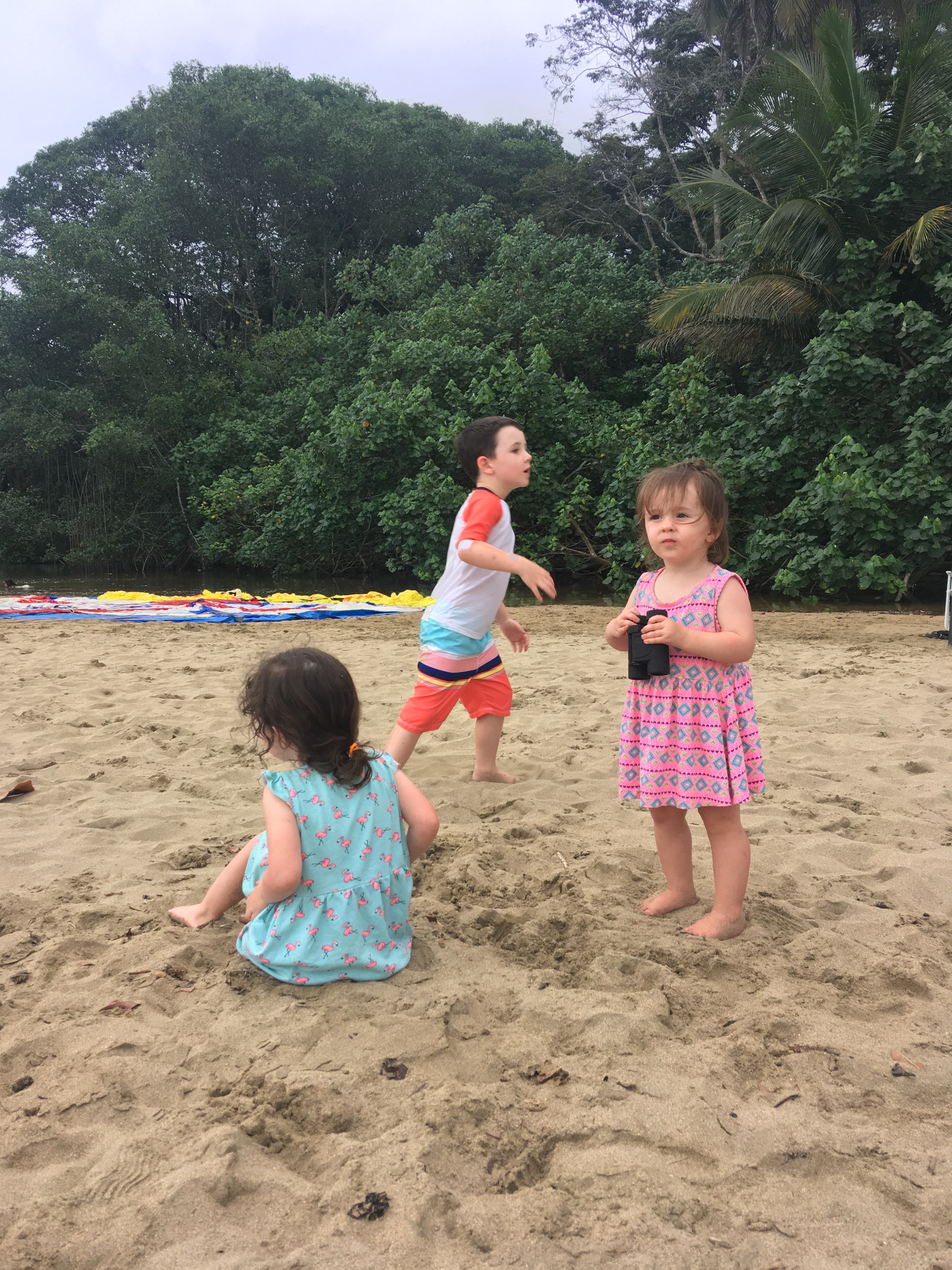 We headed back to our local beach for a walk in the afternoon since it had clouded over. We even managed to find a sloth hanging out in a tree above our car. The kids and Jacob set out on a frog hunt as soon as it turned dark. Charlie especially was loving the adventure.