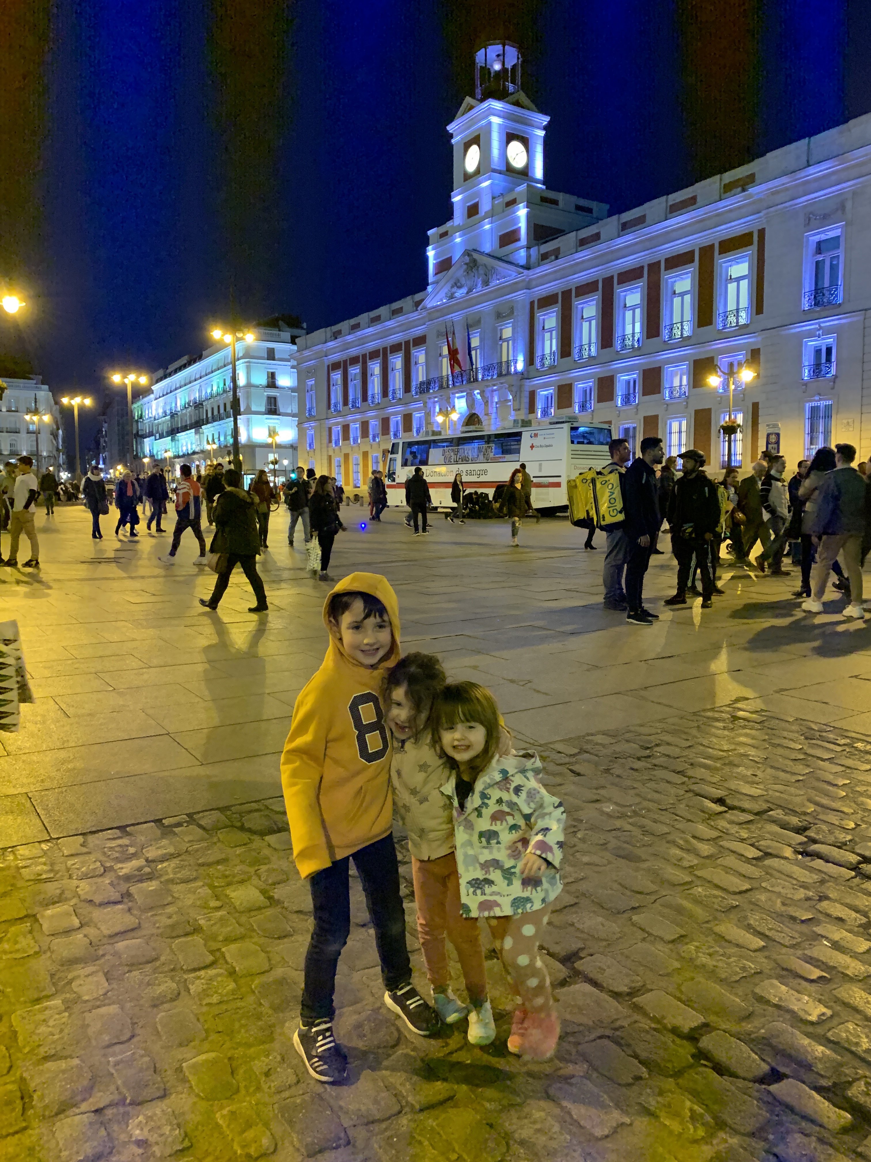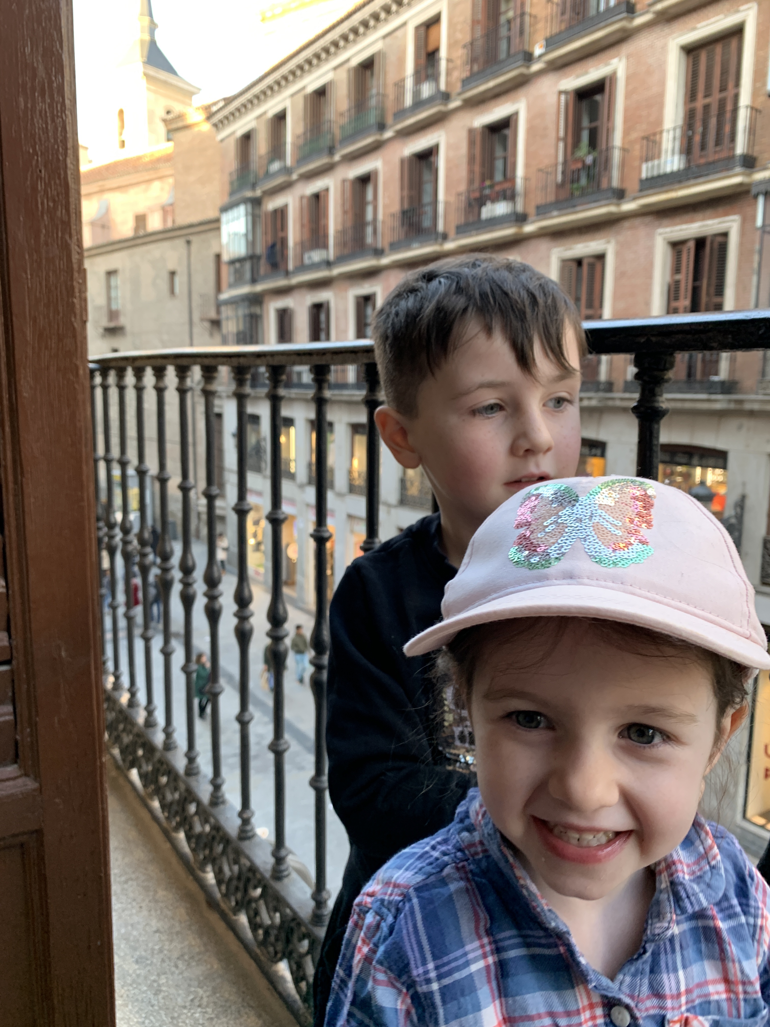 After a long day of travel (8+ hour layover in Toronto 😐) we made it to Madrid. We made it through all the boring, time consuming necessities – got our car, set up our phones and headed to our hotel. Since we are only in the city two nights we booked something right downtown. We gave Siri a real workout directing us through the downtown streets but we eventually made with only one kid throwing up in the backseat.