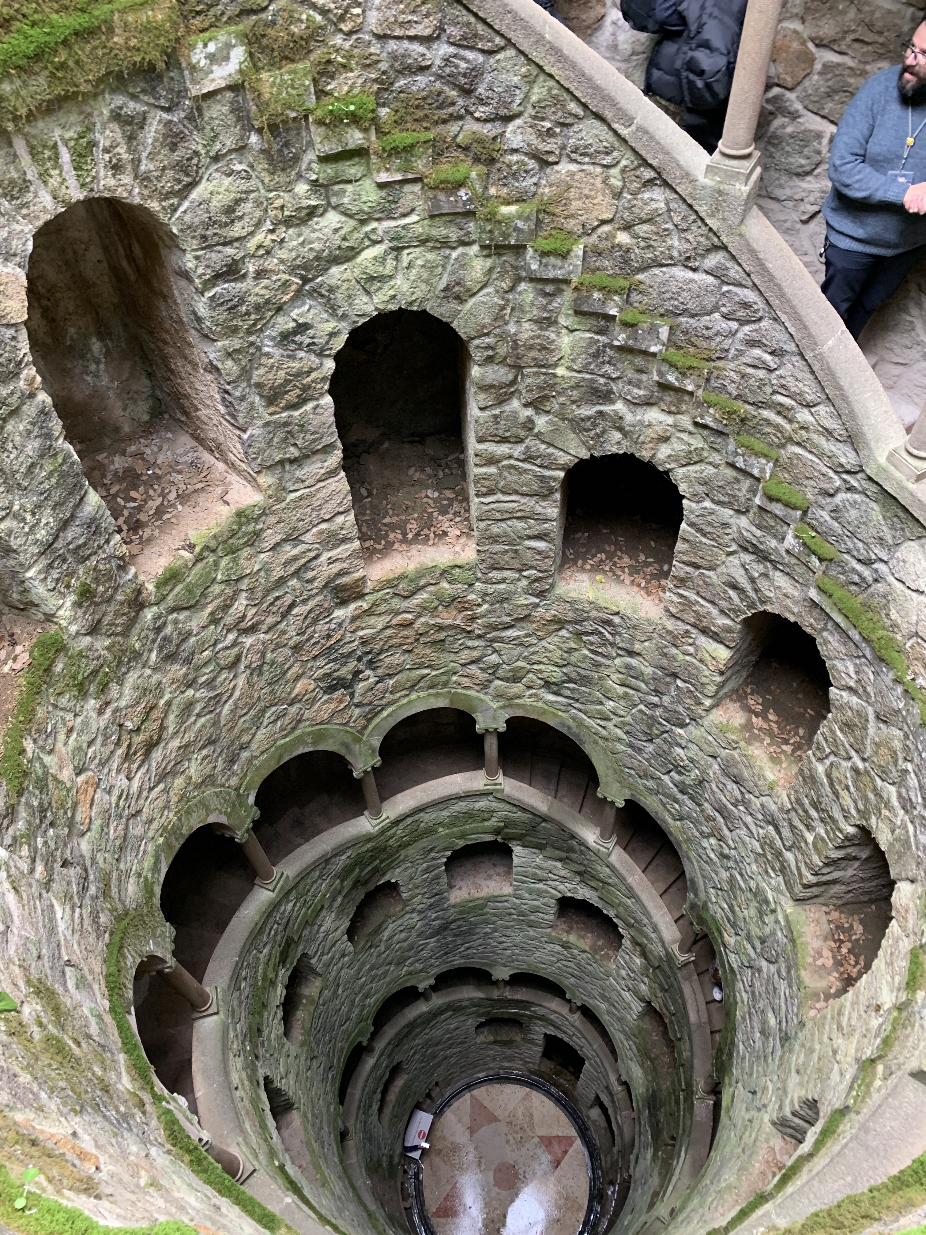 We had lunch at a sidewalk cafe before starting the trek up to Quinta da Regaleira. The entire grounds are open to wander around including the Initiation Well. It contains nine platforms, which are said to be “reminiscent of the Divine Comedy by Dante and the nine circles of Hell, the nine sections of Purgatory and the nine skies which constitute Paradise”