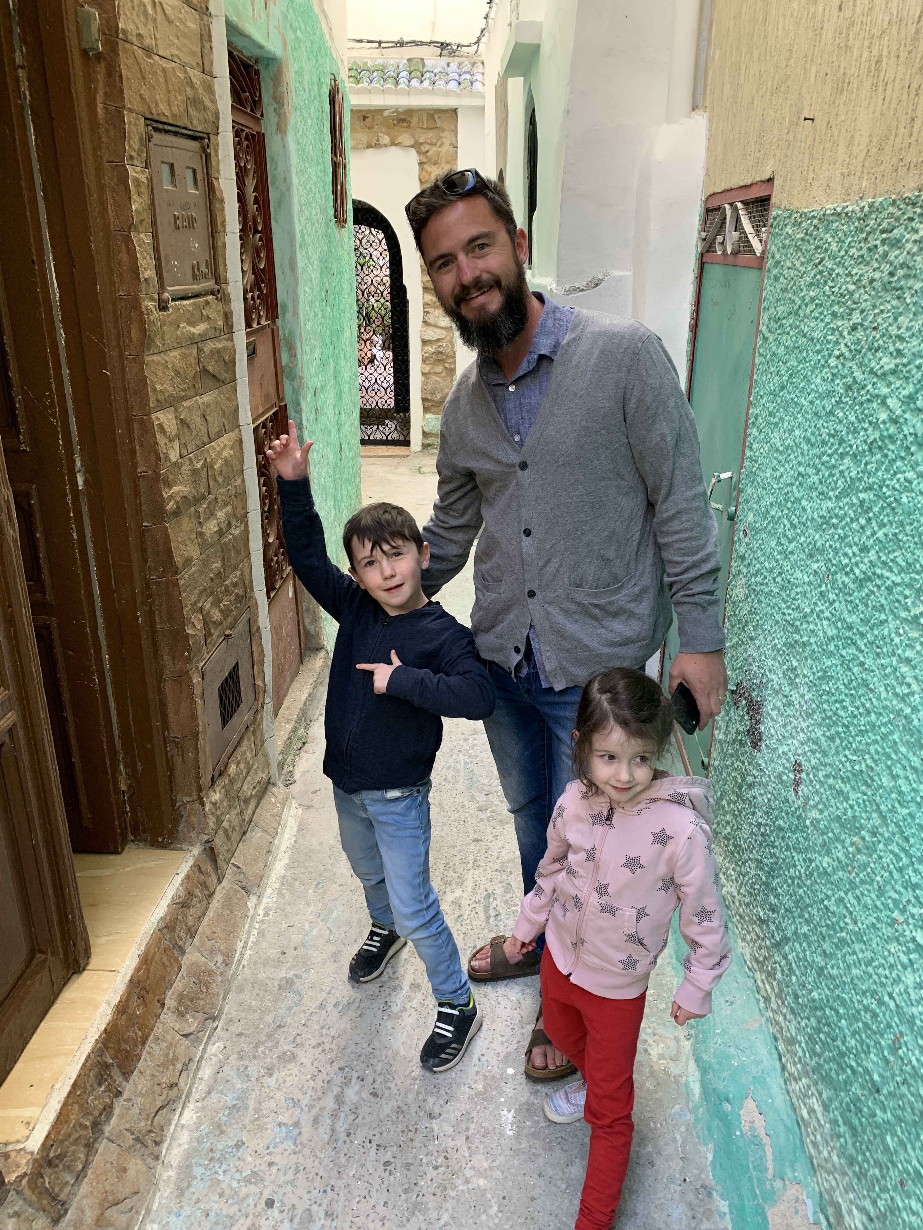 We left the essentially vacant terminal slightly unprepared for the rest of the adventure. We had wrongfully assumed that we would be able to access an ATM inside the building or maybe replace our Moroccan SIM cards. Incorrect. We eventually found some cash being dispensed from a van outside the terminal but had no phone access. That wouldn’t be a problem except that we needed to call our Airbnb host to meet us at the Kasbah gates. We eventually sorted it after declining several aggressive offers of help, a little yelling at the kids to stop launching themselves off of the parking barriers and convincing our new taxi driver to call Mustapha for us.