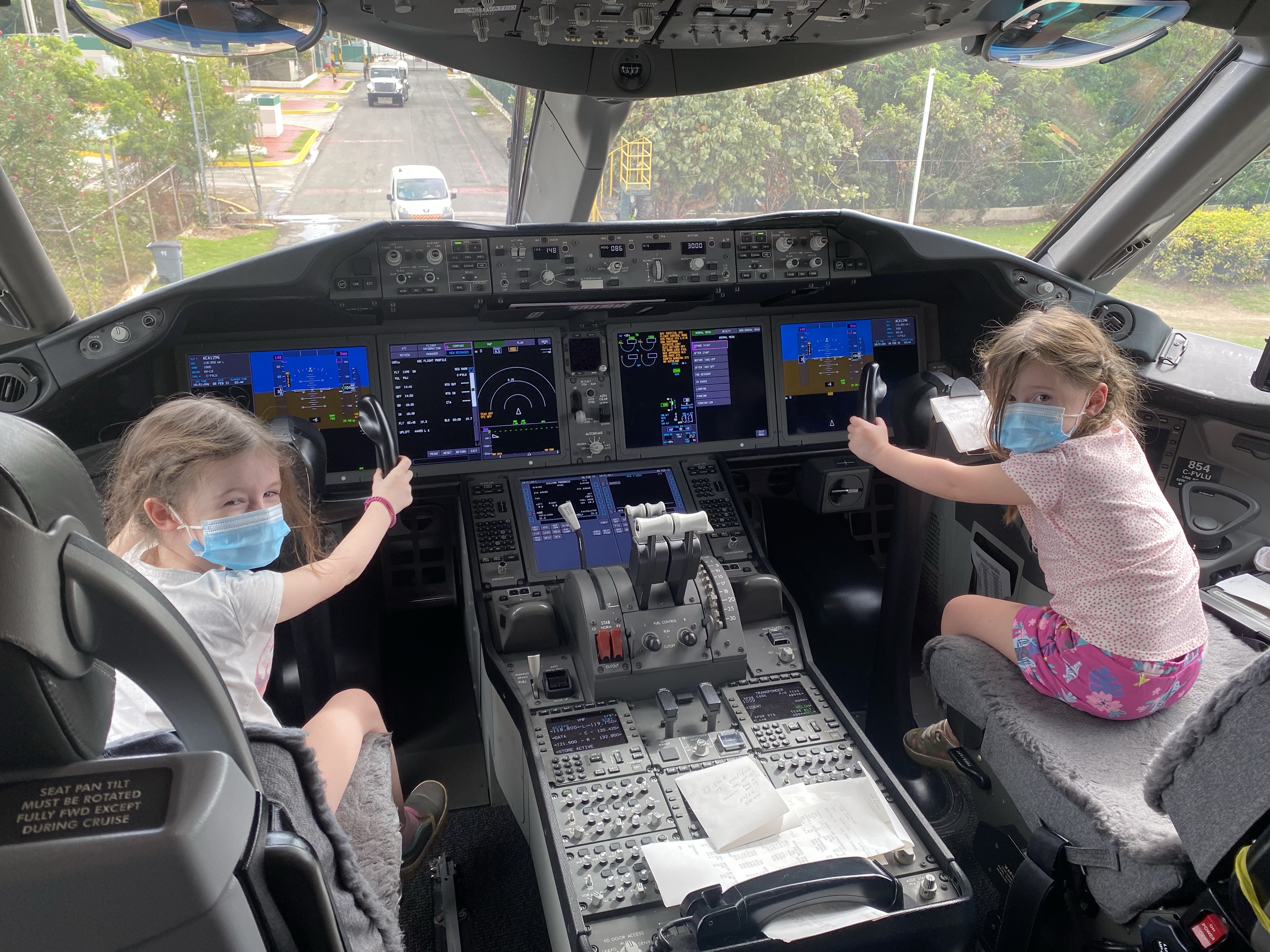 Thankfully a year off has not affected the kids ability to travel. While this was a relatively easy trek for us the kids still did incredibly. A 4am start into the freezing cold straight out of bed would put anyone in a bad mood but they never batted an eye. They were super patient at all the airports. Did exactly as they were told, were perfect on the airplanes – I watched two whole movies. They even got a personalized tour of the cockpit.
