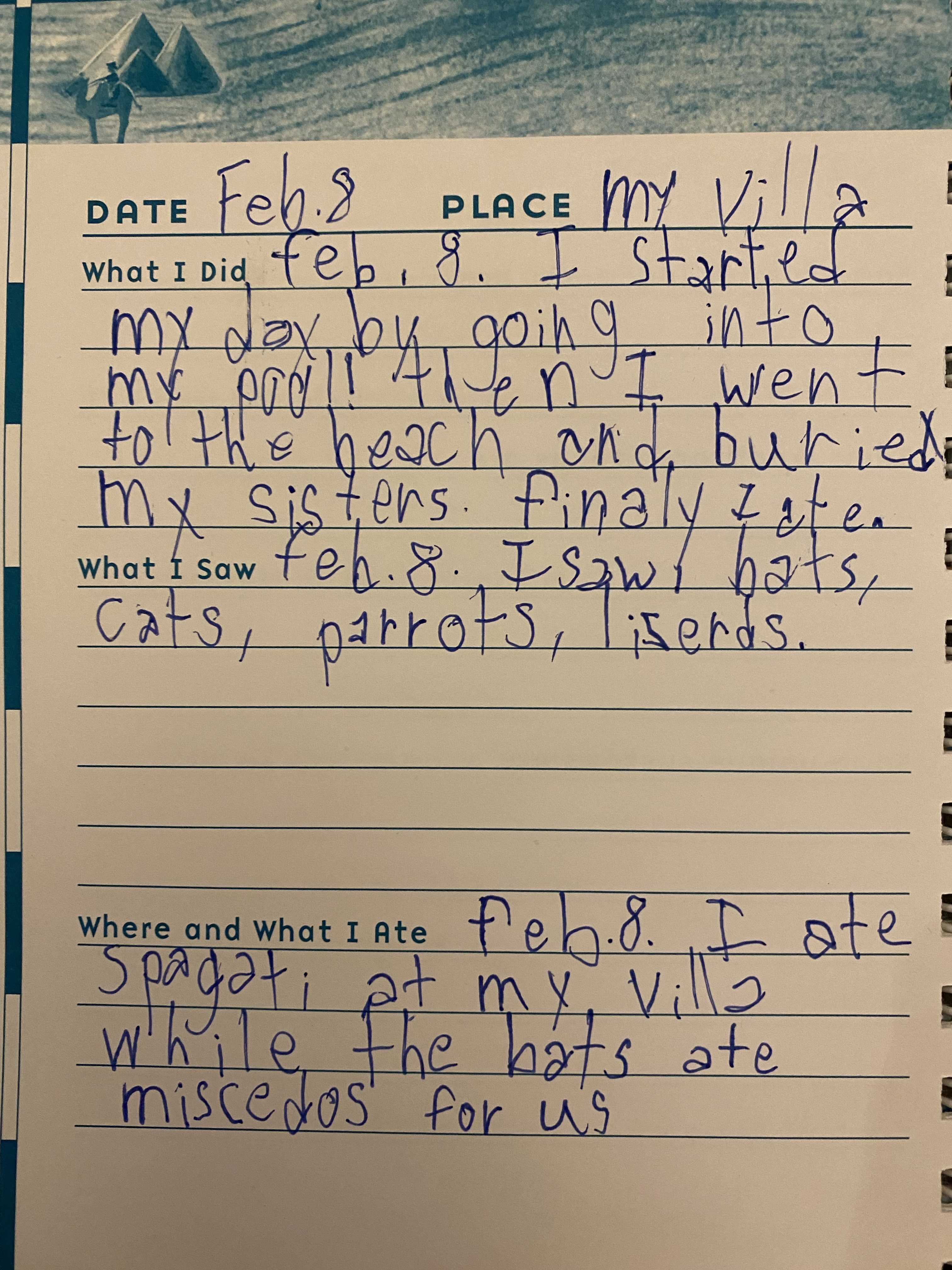 Tuesday is always a busy day for Jacob – he doesn’t ever completely stop working so the kids have decided that Tuesday would be one of their main school days. It’s still vacation though so school doesn’t start before a quick dip in the pool. We can call it gym class.