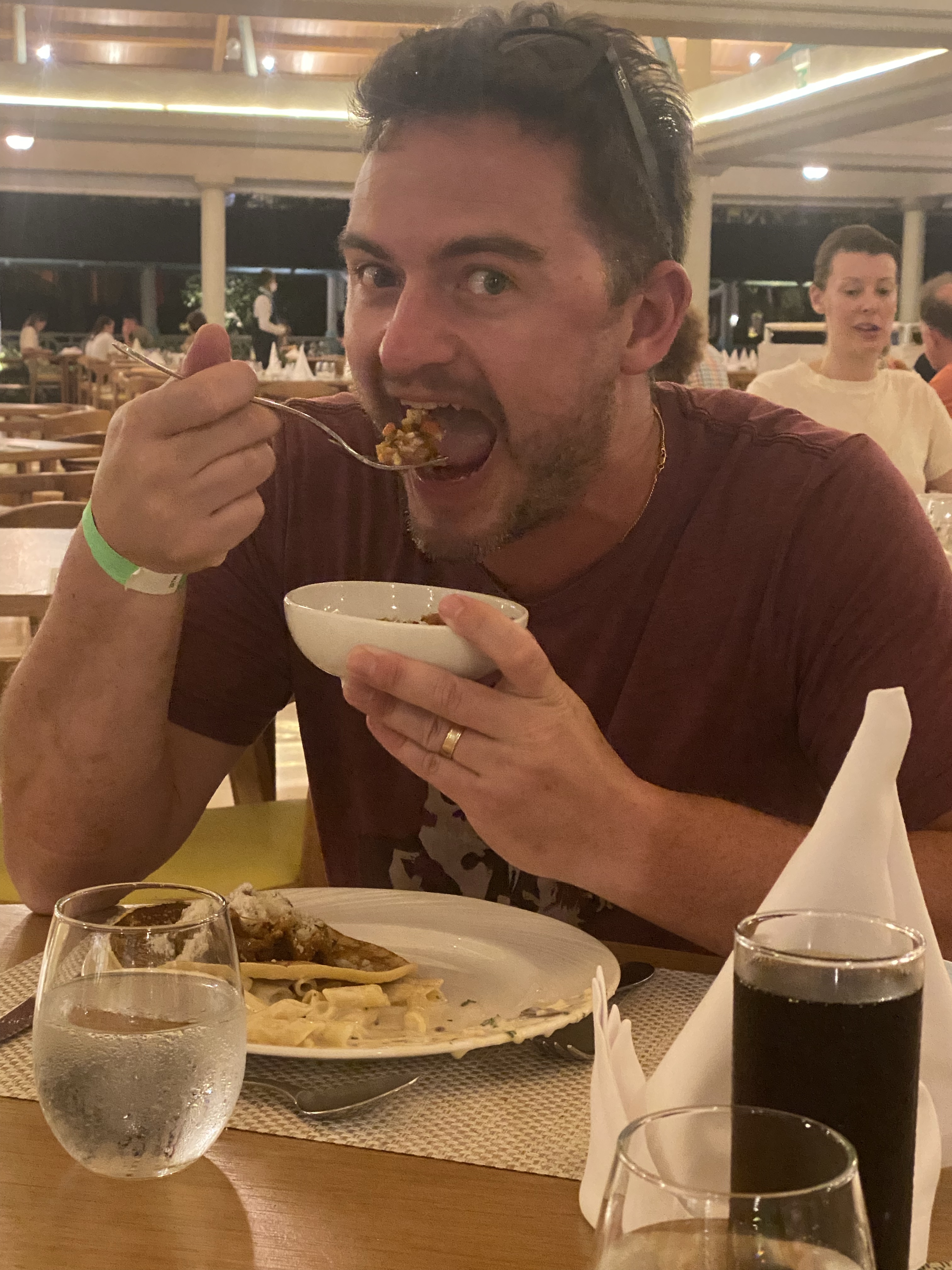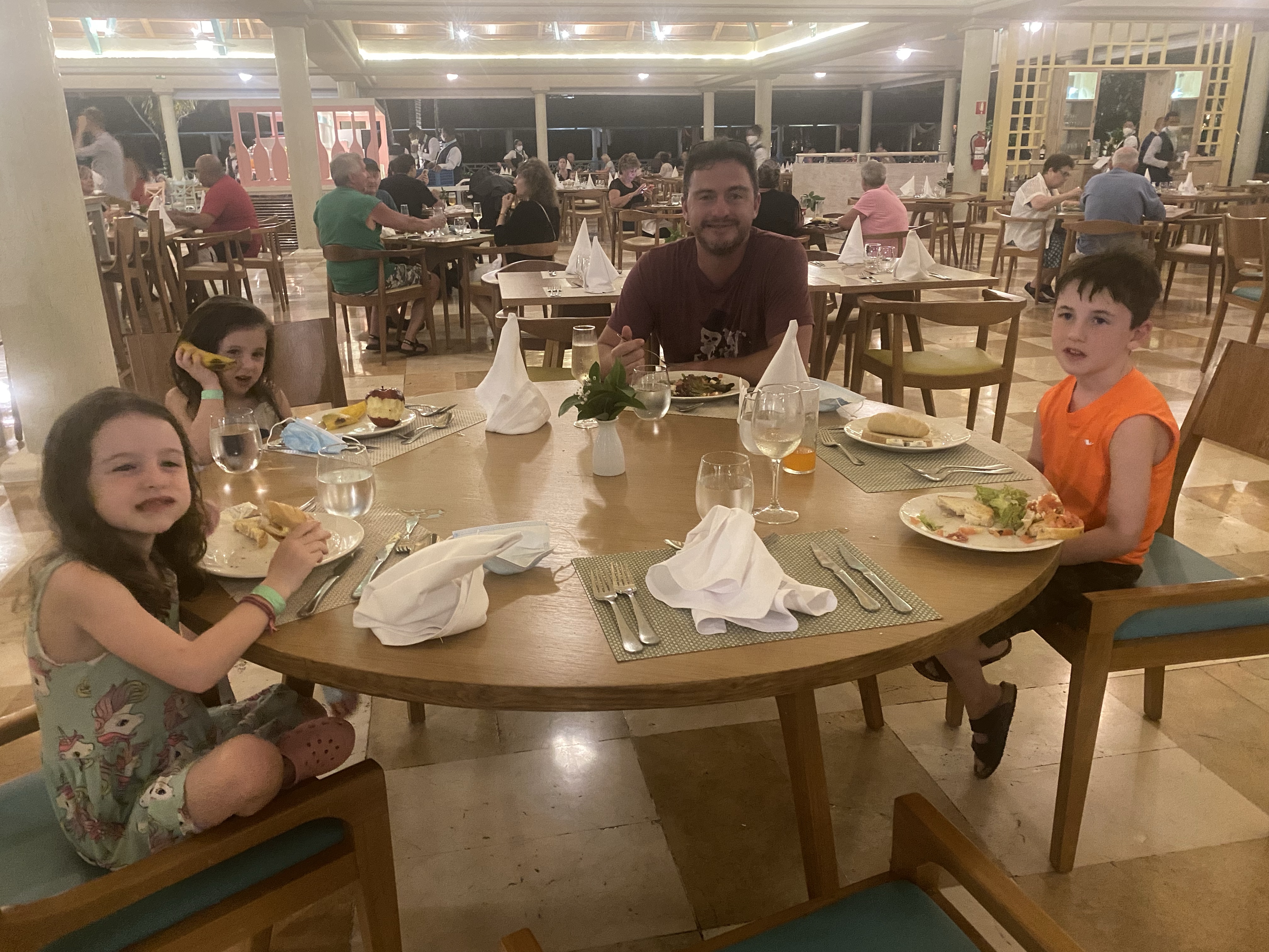 After dinner, the kids discovered the joys of the evening show at a resort and played a starring role in the entertainment.