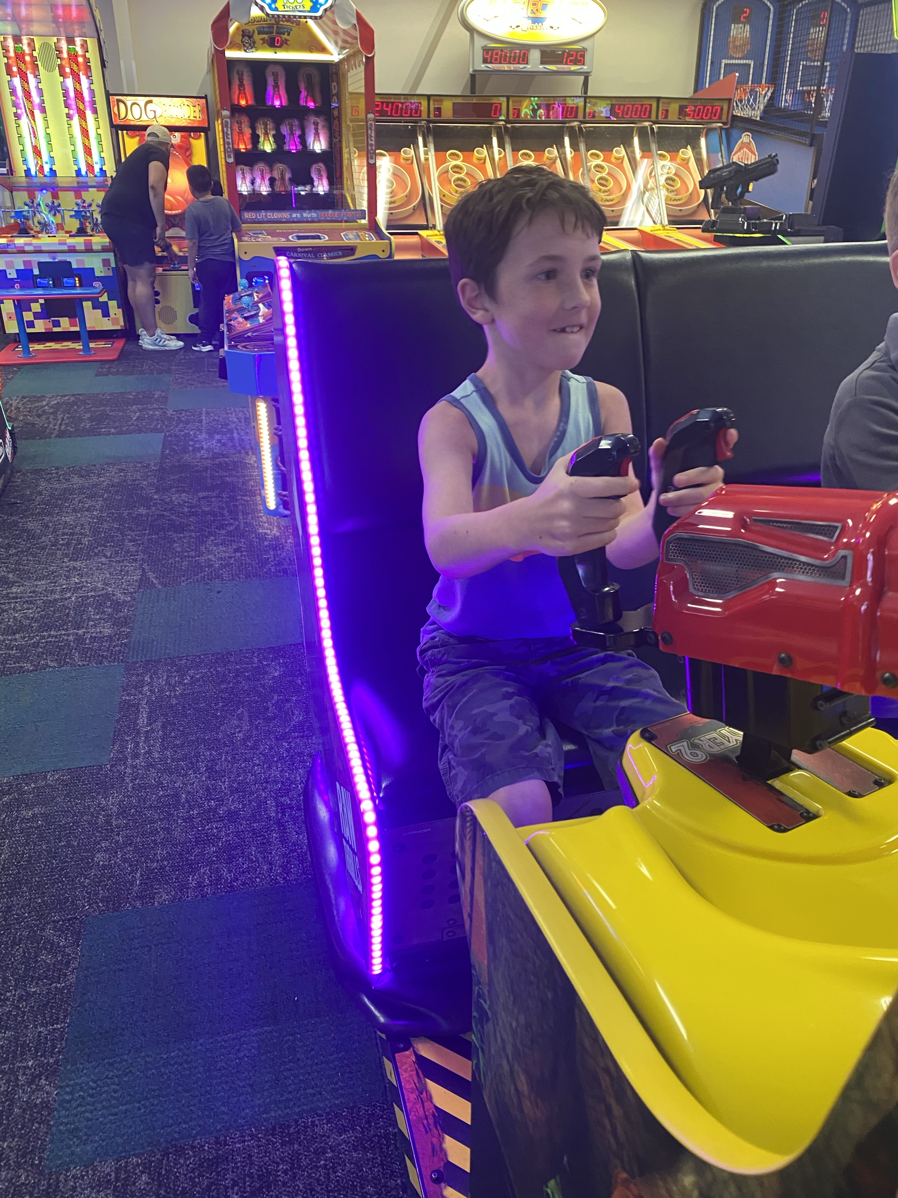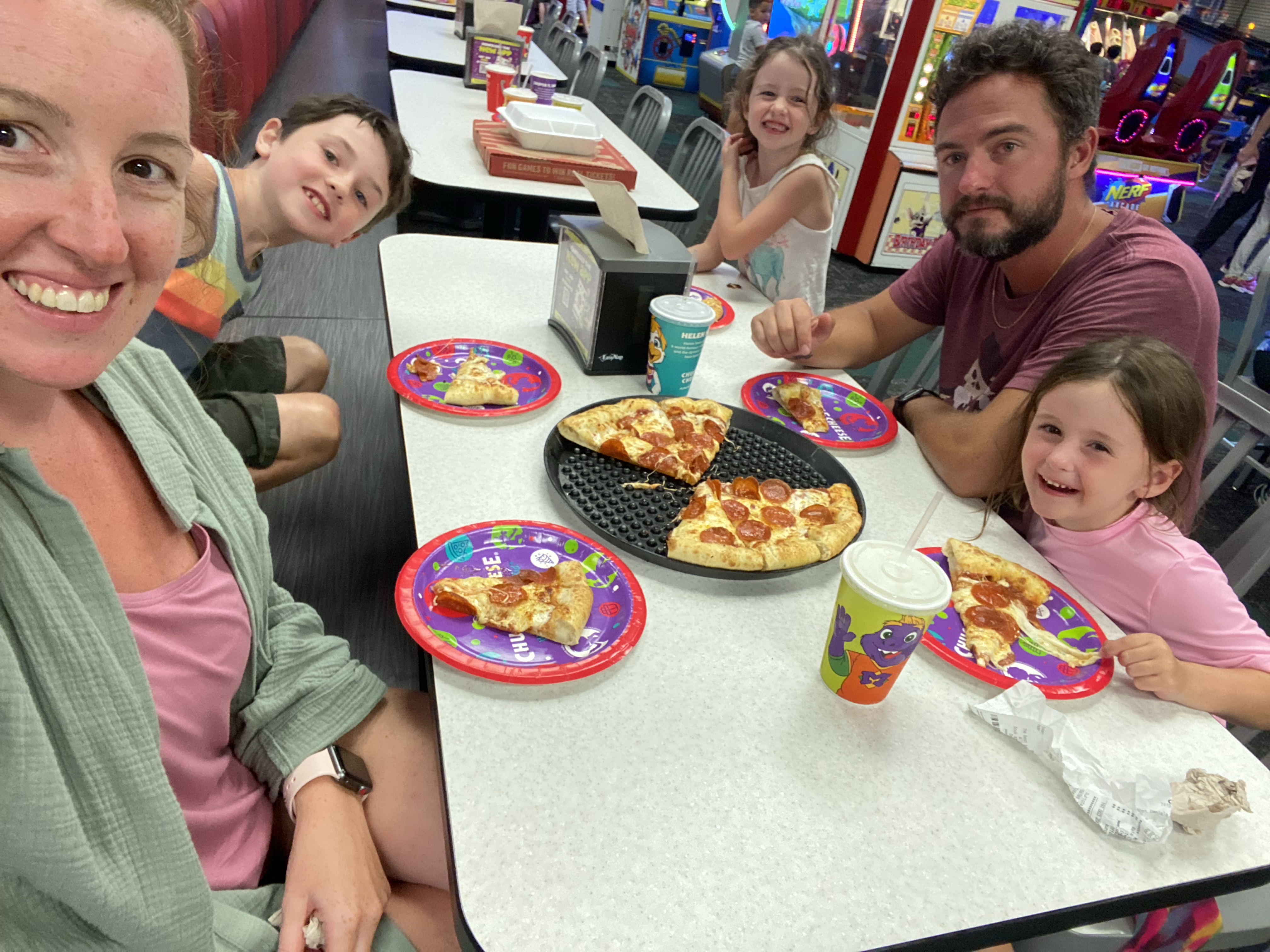 We figured we would go really big on the day – it was too late to make it home and cook supper and everyone was still in high spirits so we headed to Chuck E Cheese for supper. I have to admit I was very surprised. I have never been to a Chuck E Cheese before but it was very clean, super bright and the pizza was delicious. I mean probably the best takeout pizza I’ve ever had. I had imagined a limp potentially undercooked soggy pie but instead it was crispy with a garlic butter stuffed crust. So good. The kids had a total blast. Again, because we are cheap, we split a single 60minute card at the arcade games. You have to space out your game taps a bit, but we definitely maxed our $25 worth of play.