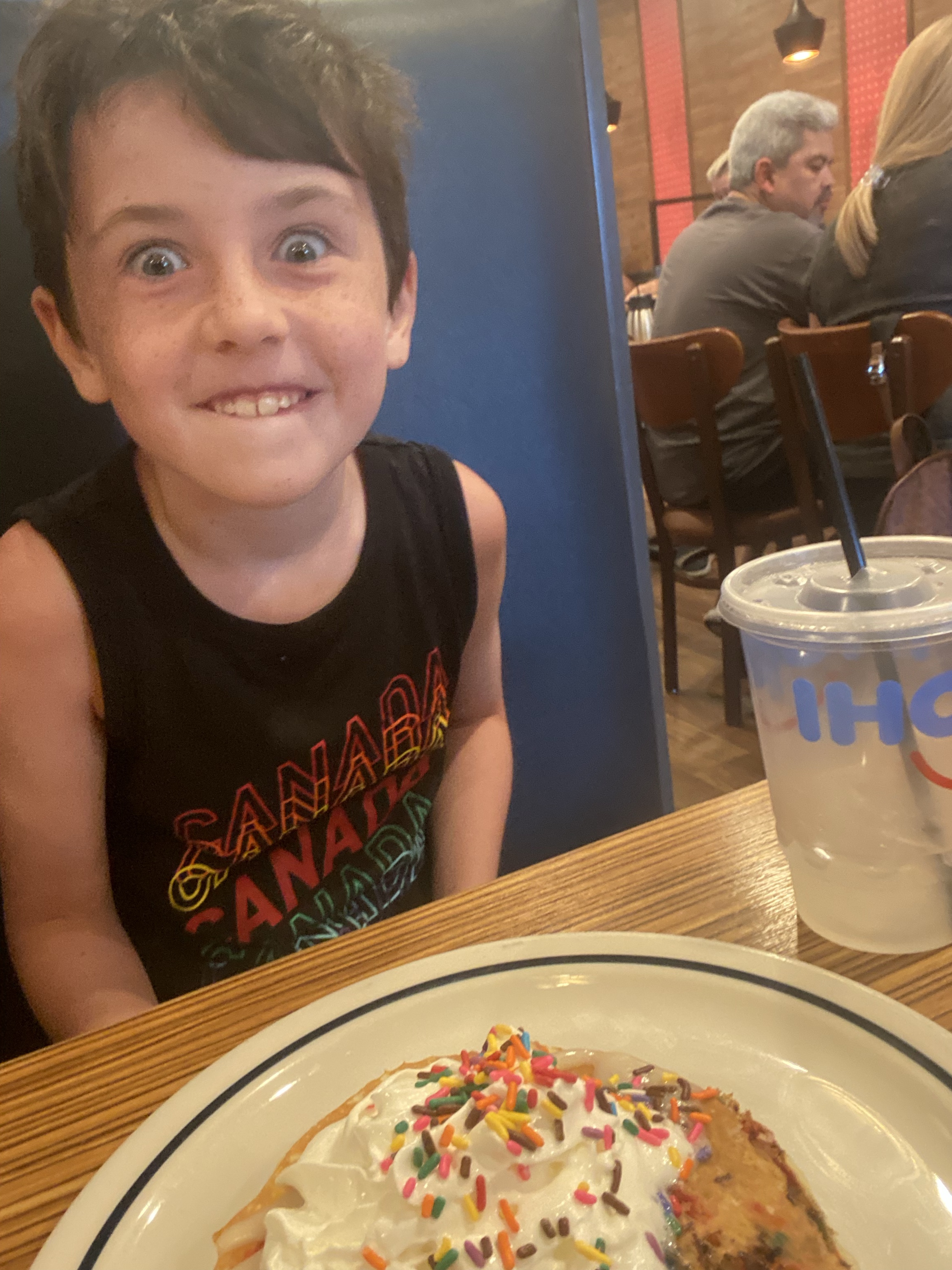 Since we were traveling late into the night and had no food at our place we thought we would introduce the kids to the local culture and visit an IHOP for breakfast. The kids were pumped with the sprinkle/chocolate/icing extravaganza dessert pancake options for breakfast. Charlie has already said this is the first place he’s going to come on vacation when he’s older and has kids.