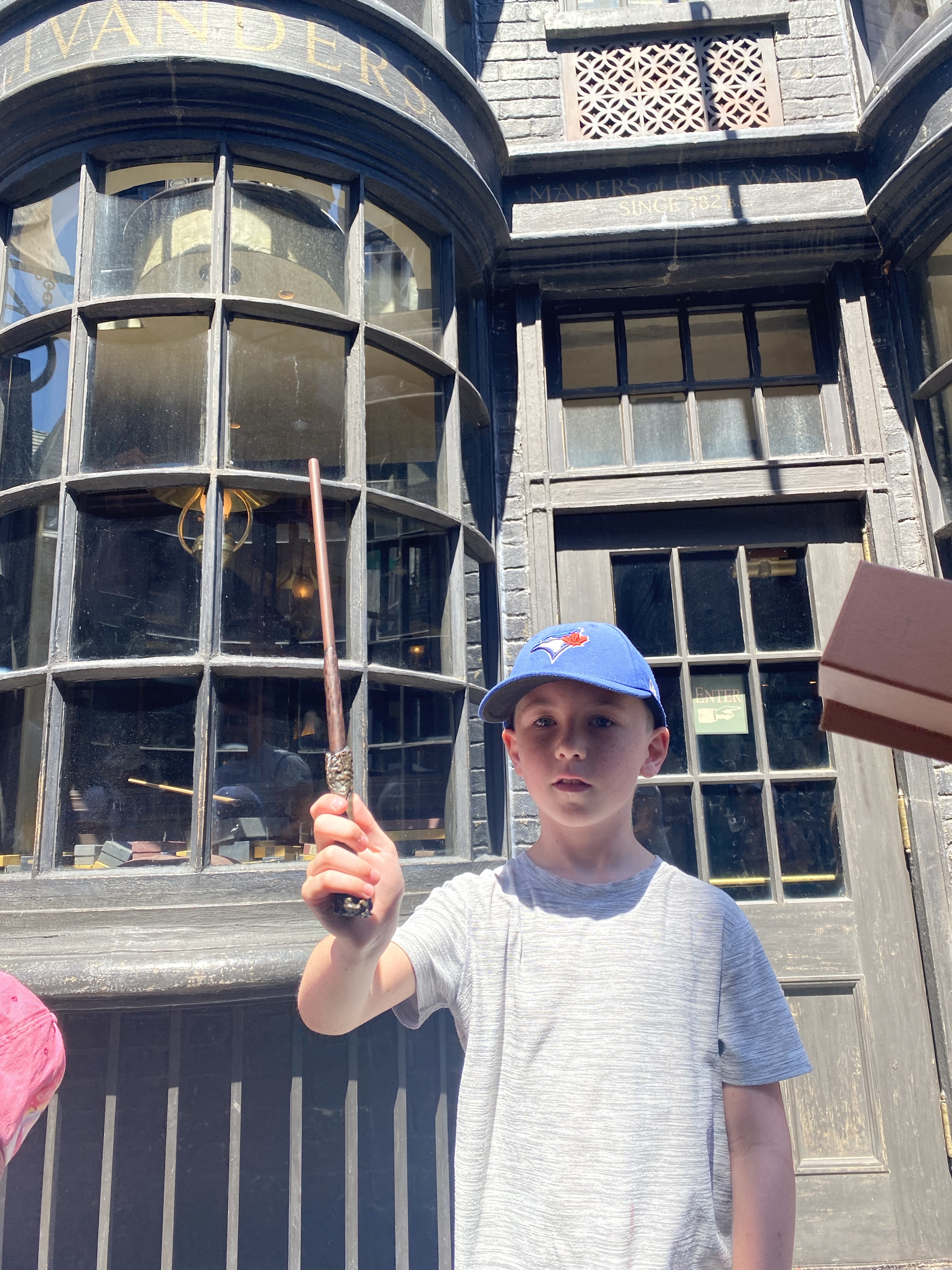Charlie is currently obsessed with Harry Potter. I mean obsessed. He has read the series at least twice if not three times now. He’s read every spin-off book he can find on prime reading – including a cookbook. Sometimes we are concerned that he can no longer tell the difference between muggles and wizards. Universal studios has an entire section of the park devoted to Harry Potter. They have recreated diagon alley and hogsmeade. There’s a hogwarts castle and you can get butter beer. You can even cast spells with a wand around the park.