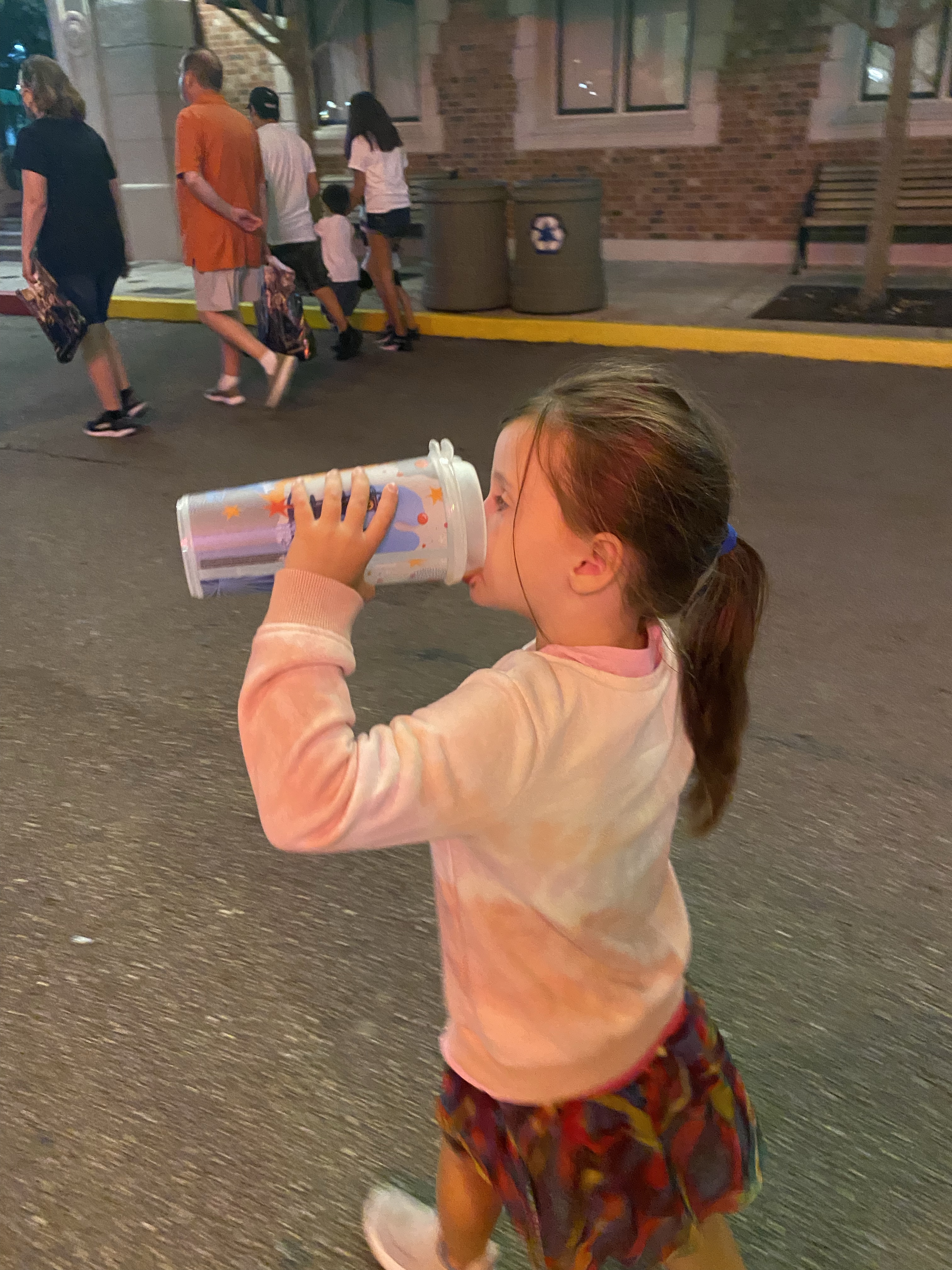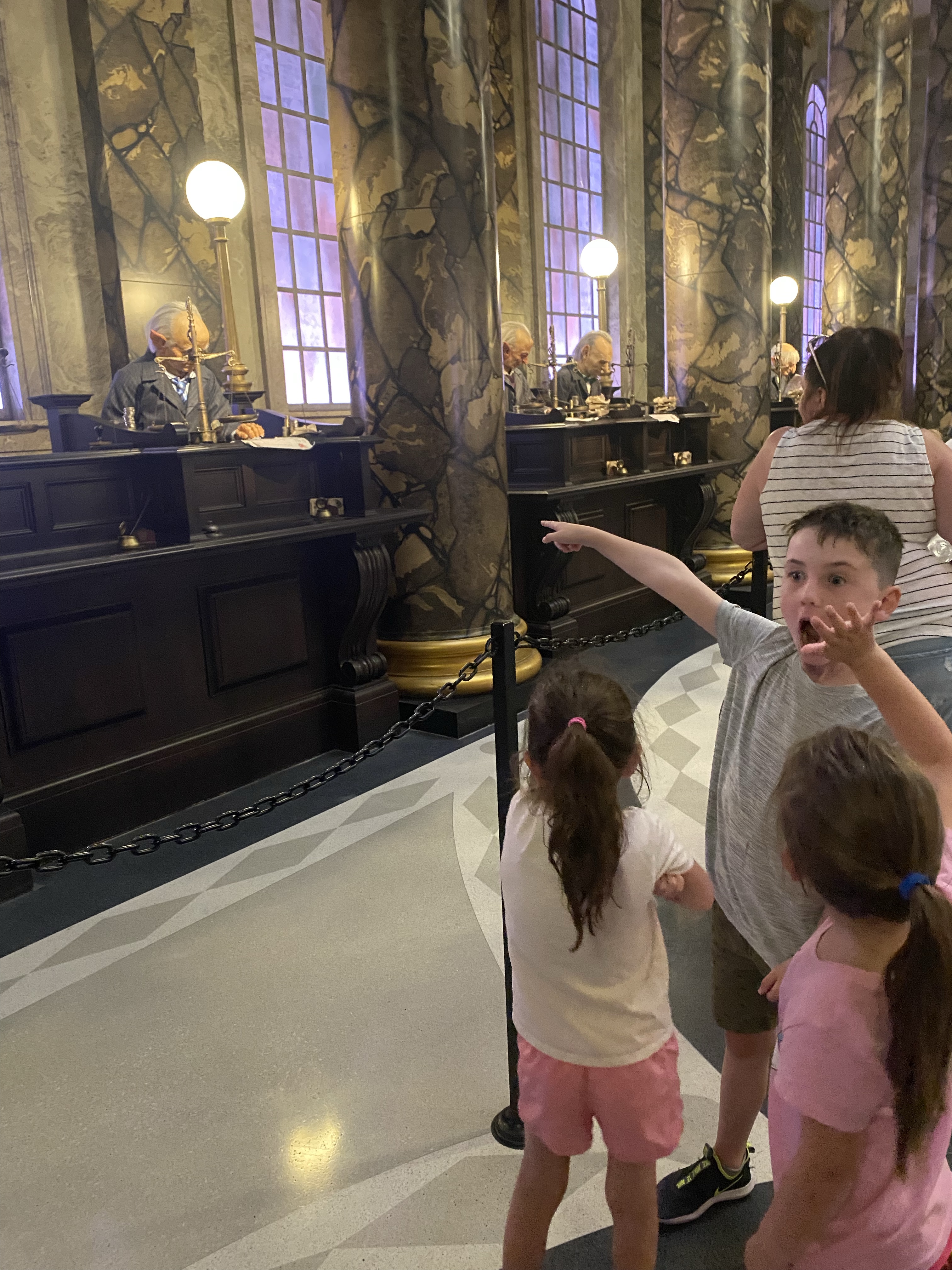 The Hogwarts Express was probably my favourite part. It was so well done. You would swear you were on the actual train. Hogsmeade was also super cool. It looked completely magical. There were three rides inside Hogsmeade, but unfortunately the girls were not tall enough to ride two of them. We decided to divide and conquer so that the girls and I could do their ride while Charlie and Jacob rode Hagrid’s motorcycle roller coaster. In the line to ride the Flight of the Hippogriff Nora made friends with the lady behind us and Sarah offered to be Nora’s responsible companion so that we could all ride together. We have been very pleasantly surprised by how friendly everyone has been.