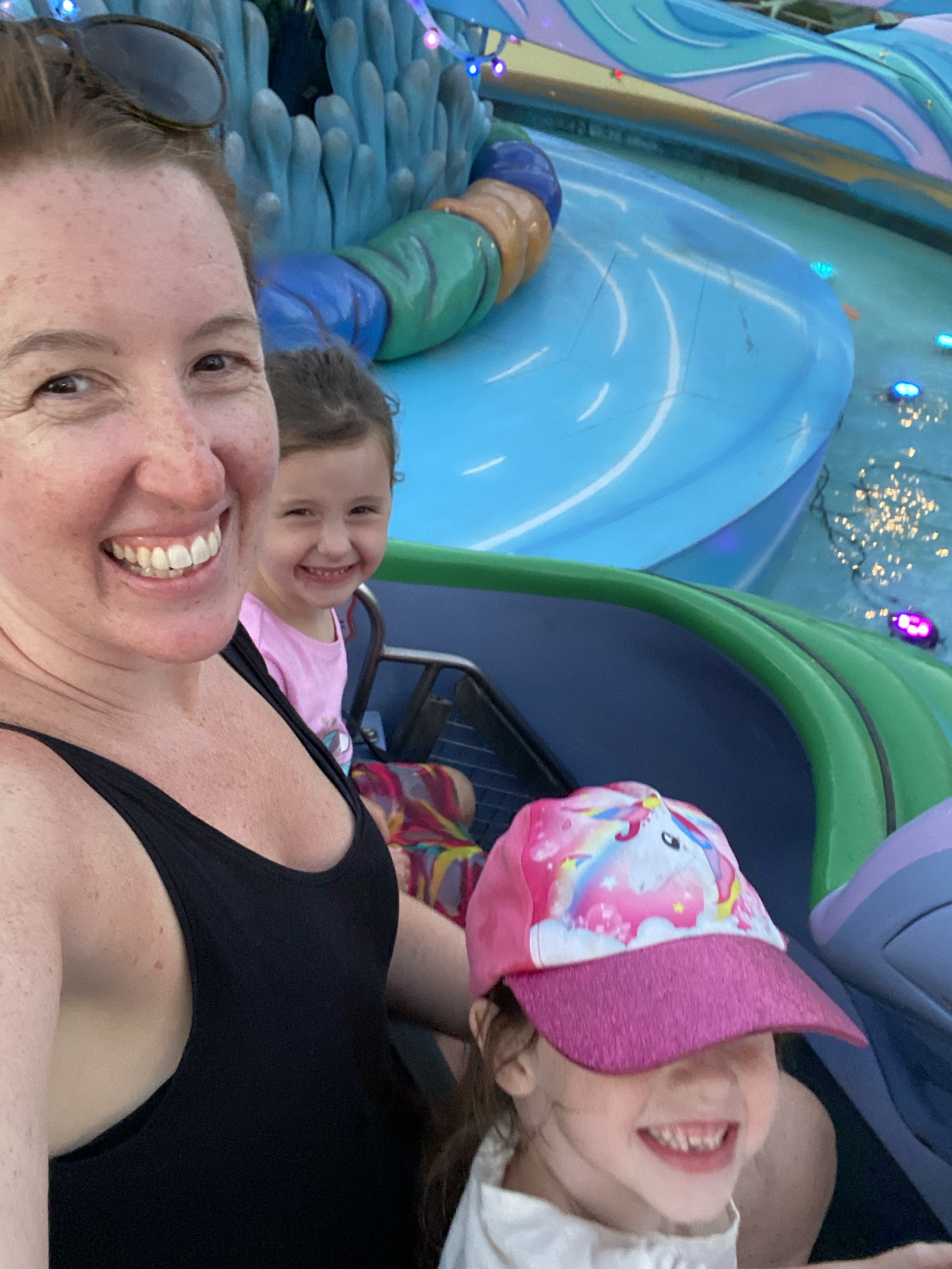 We started the day off bright and early (for us). We were at the park gates as they opened at 9am. We got in line to enter and Charlie’s head very literally exploded. He got a nosebleed he was so excited! Because the girls aren’t tall enough to ride most of the big rides in Harry Potter world and they all had crazy wait times first thing in the day we thought we would start off with some easier ones along the way. We hit up ET, the Simpson’s and Men in Black before we ate our packed lunch perched on a kerb. We are very fancy.