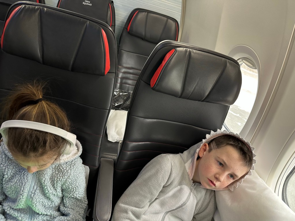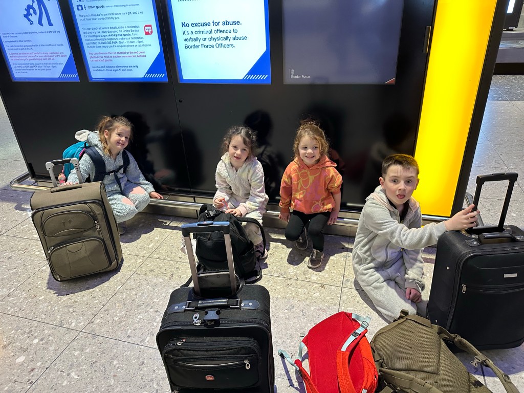 Adam has been back in England off and on since September so when Kayla said she was going to fly over to see him in February I jokingly said I would join her to help her on the flight. Somehow that joke turned into reality and on Wednesday we took flight with 5 kids ages 1,3,5,7 and 9 from Halifax to London.
