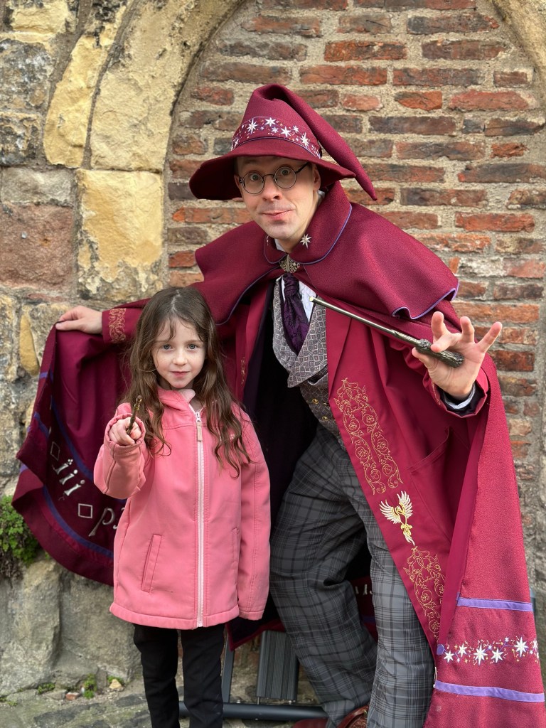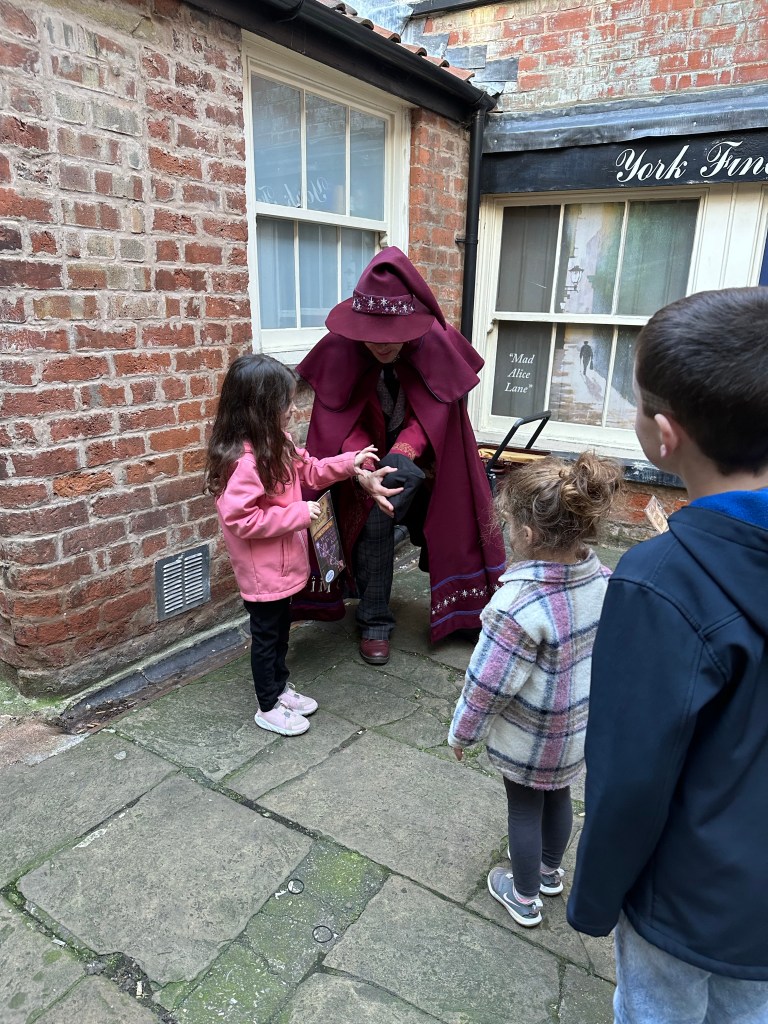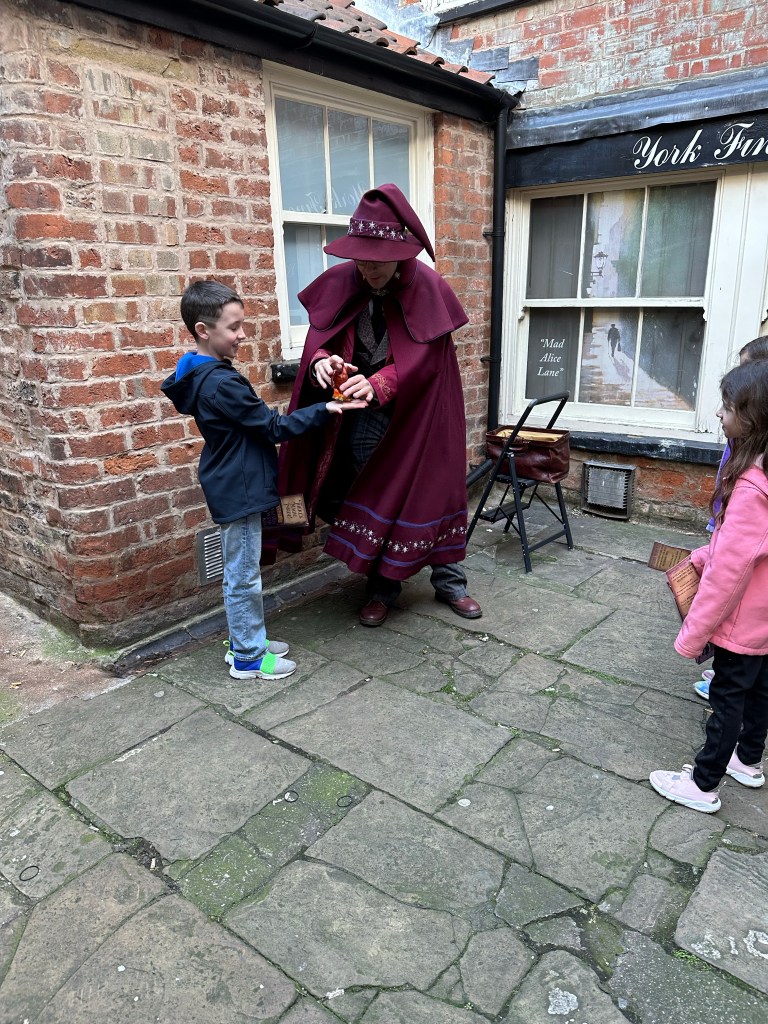 York is really capitalizing on the Harry Potter and wizarding excitement. The shambles, despite not being connected to Harry Potter at all, does have a magical feel to it. So much so that they have a kids tour called the Wizarding Walk of York. Its a kids tour led by a wizard in full costume that does magic tricks at each stop of the tour. It comes complete with your own wand a leaflet of magic tricks to take home with you.
