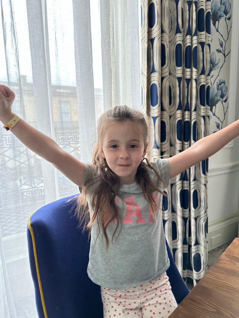 We spent our first night back in the UK at Gramma Gail’s house (Adam’s Aunt) and I’m confident this will end up being the highlight of Nora’s trip. Gail clearly has the same taste as Nora as everything shimmered and dazzled. All surfaces were silver and pink with as many jewels or jewelled accessories that would fit. Nora was just beside herself – she’s pretty well convinced that Gail is loaded. I’ve also since discovered that she helped herself to some of the jewelled perfume (“I just couldn’t help myself!”) as she has a very distinct aroma about her.
