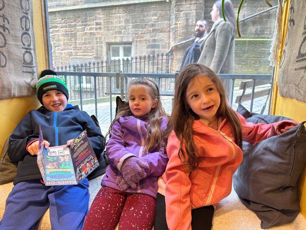 We had a wonderful day and a bit in Edinburgh. We stayed in a great family apartment style hotel that had more than enough room for all of us. We found a super cute little bookstore around the corner from us, where the kids each picked out a new book and got their receipt folded into an origami elephant! No trip to the UK is complete without at least one mean at Wetherspoons, so we tucked in for some fish and chips for our first night.