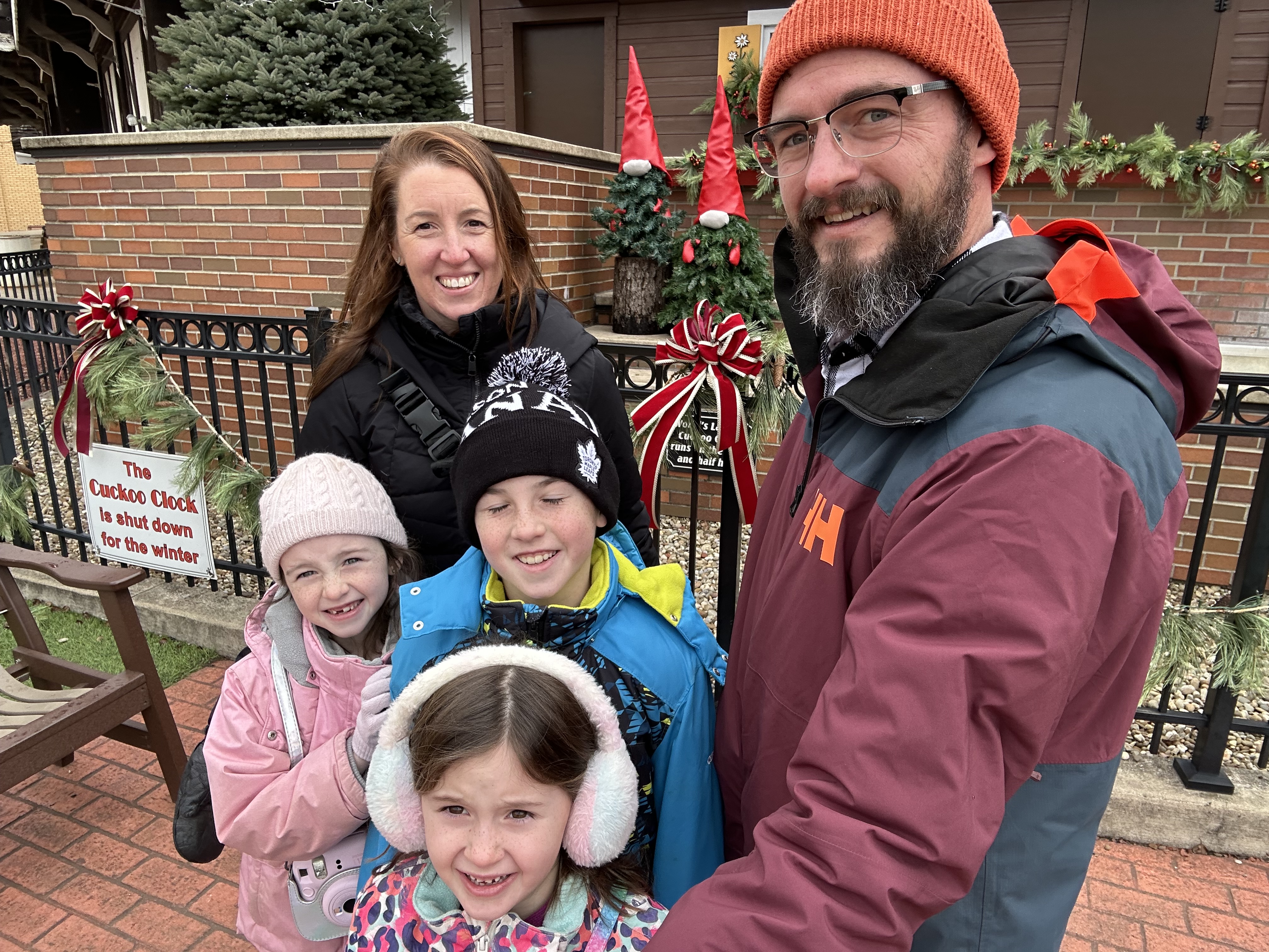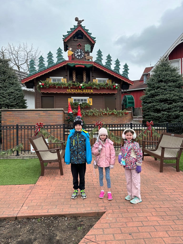 Because we had time to kill, and when in Ohio and all, we made a pitstop in Sugar Creek, the Little Switzerland of Ohio, the home of the world’s largest cuckoo clock. Unfortunately it doesn’t keep time in the winter, and so we didn’t get to see it in action, but it was a pretty little town. It is also the home to an unusually large collection of steins and decanters. They even have an entire chess set made solely of decanters.