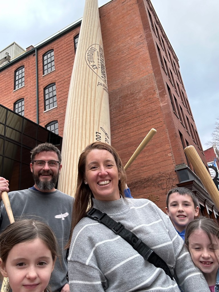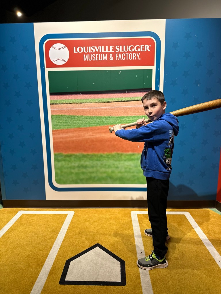 After lunch we headed to the Louisville slugger museum, I love a factory tour and this one did not disappoint. The kids all got to try some famous bats, when if they have no idea who the people are that owned them.