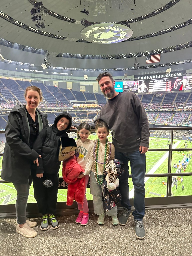 We headed in to New Orleans – about an hour long drive late Sunday morning to watch the Saints vs Falcons in their last game of the season. After much deliberation on what would be appropriate clothing for a football game we arrived to realize that it’s an indoor stadium. We are real fans. I also had to sprint 3 miles round trip to the van to drop off my bag. Turns out they’re really strict on what you can take in with you.
