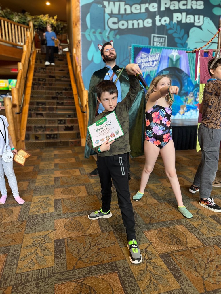 We found a place for Ro to stay for a couple of days since it’s wolves only at the lodge. The kids quickly forgot their sadness in saying goodbye to him once they realised where we were going and what a great wolf lodge actually was. We got ourselves our ears, booked into our kid cabin, did a little tour around and headed for the waterpark.