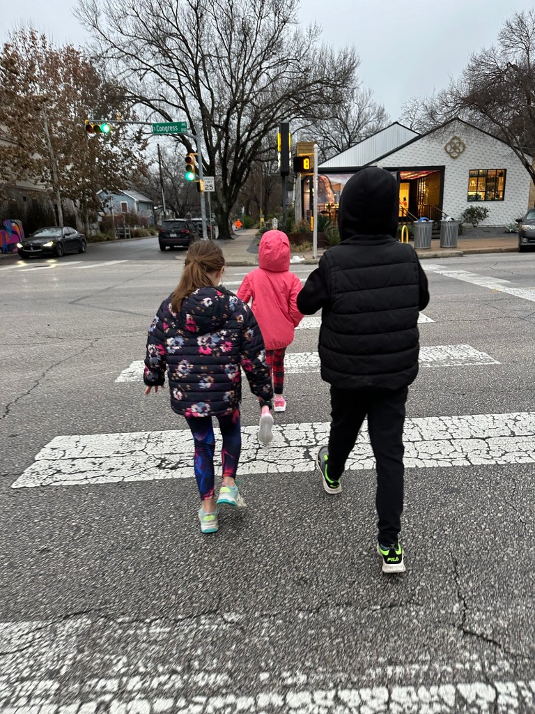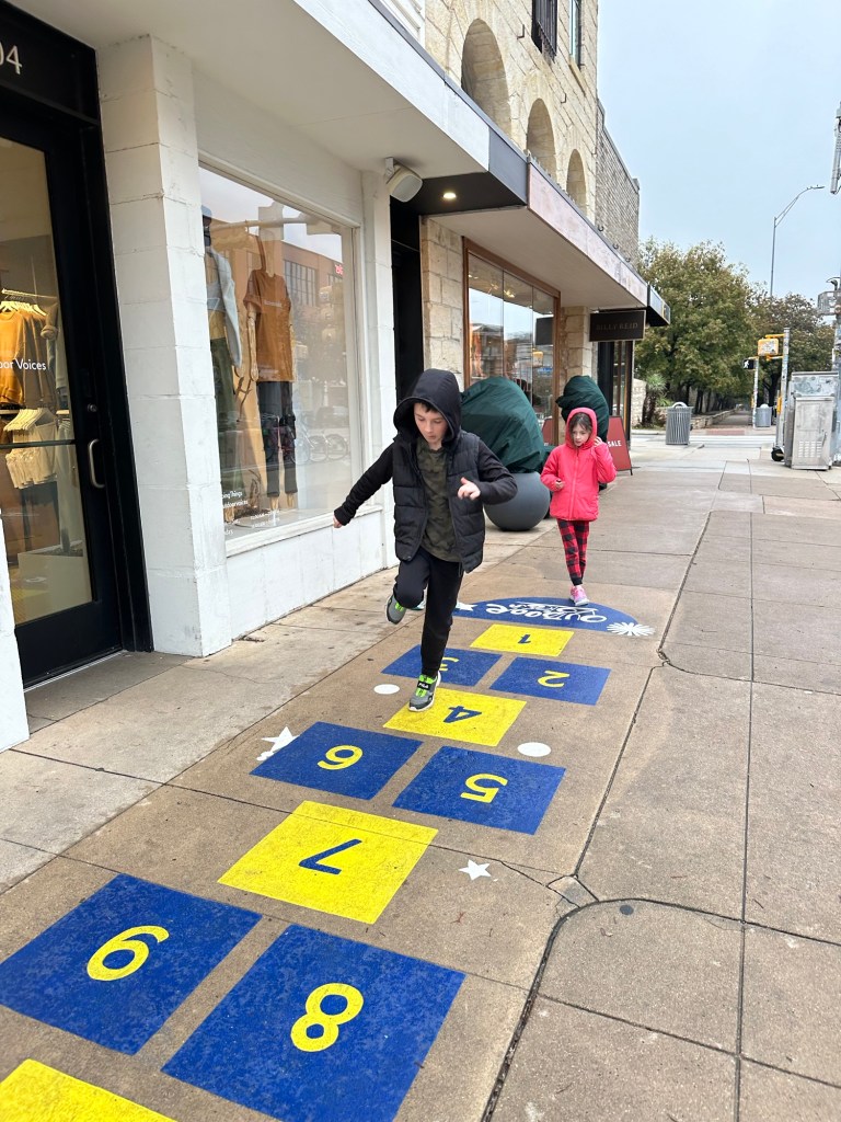 We quickly adapted to our life in Austin. We spent our first day getting caught up on work and school. The house had some games and colouring set up for the kids. The backyard was fenced in and had more than enough space for Roland. We took a quick walk down to the park for some playground time then we headed in to the city for a quick tour before dinner.