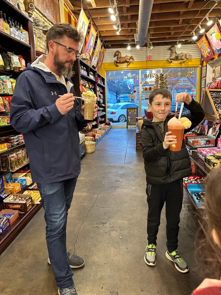 South congress has a very old school Mexico/California feel to it. It was a great little strip to walk. There were all kinds of bars, cafes and shops. We ended our walk at The Big Top soda shop where you can handcraft your own soda concoctions. Charlie painstakingly studied the menu before making his decision and upgrading to a float. All in all a great first day in Austin!
