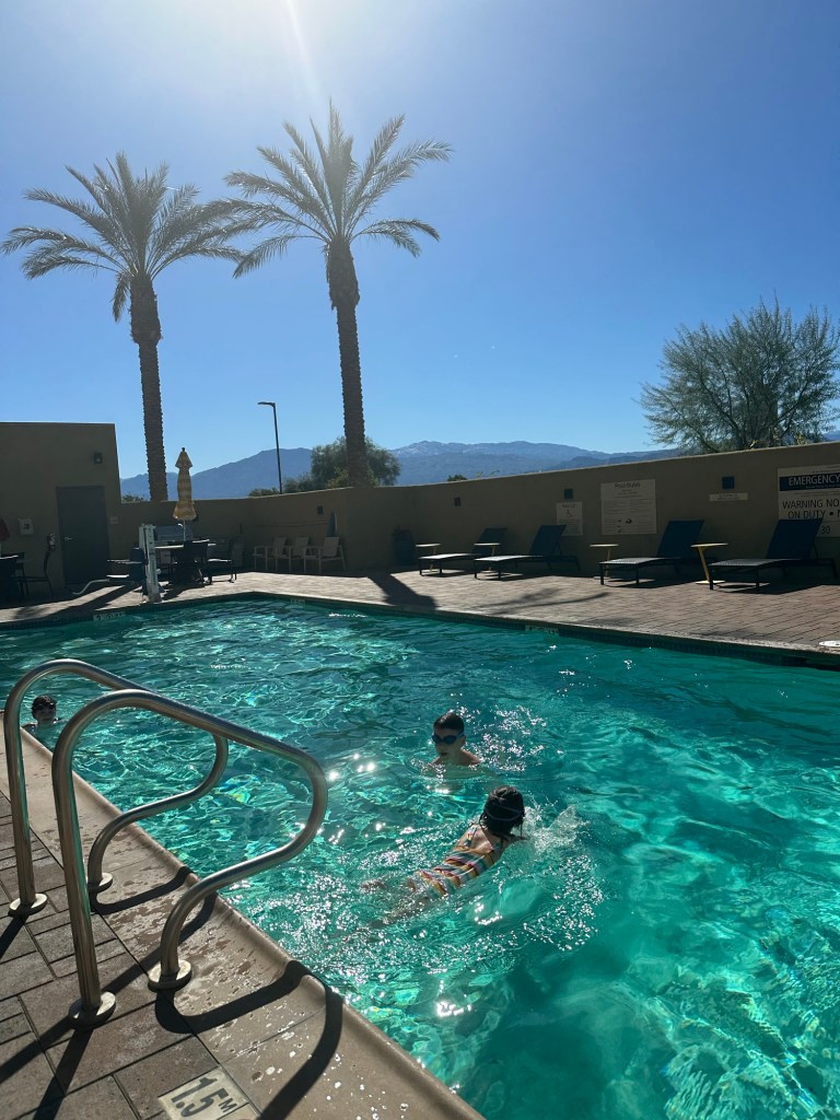 We spent the night just outside the lesser visited east entrance to the park. The kids had an absolute blast playing in the outdoor pool – they swam for three straight hours! I got to do my board meeting sitting in the sun, so really it was a win all around. After another Hampton Inn breakfast we hit the road and made our way into the park.