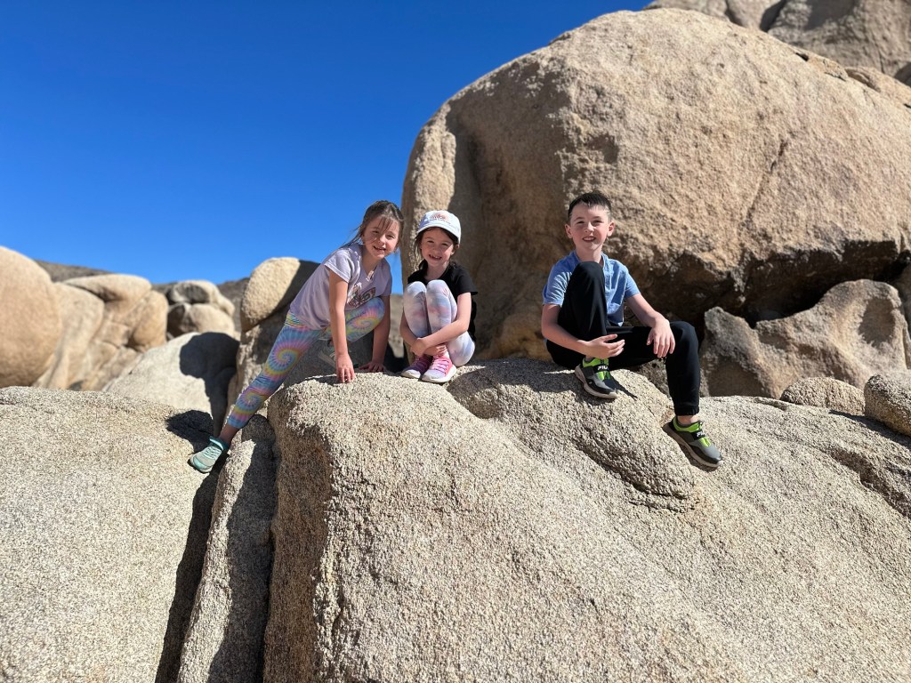 We made a quick stop at the Cottonwood visitor center where we grabbed a map and a magnet and then set off to see the “if you only have one day” sights. First up was Skull rock and the discovery trail. After about an hour in the car it was a great chance for everyone to get out and stretch our legs. The discovery trail gave the kids a chance to do some more rock scrambling and we finally managed to miss a sign on a trail. Luckily it spit us out in the main road just about a half a mile from the car.