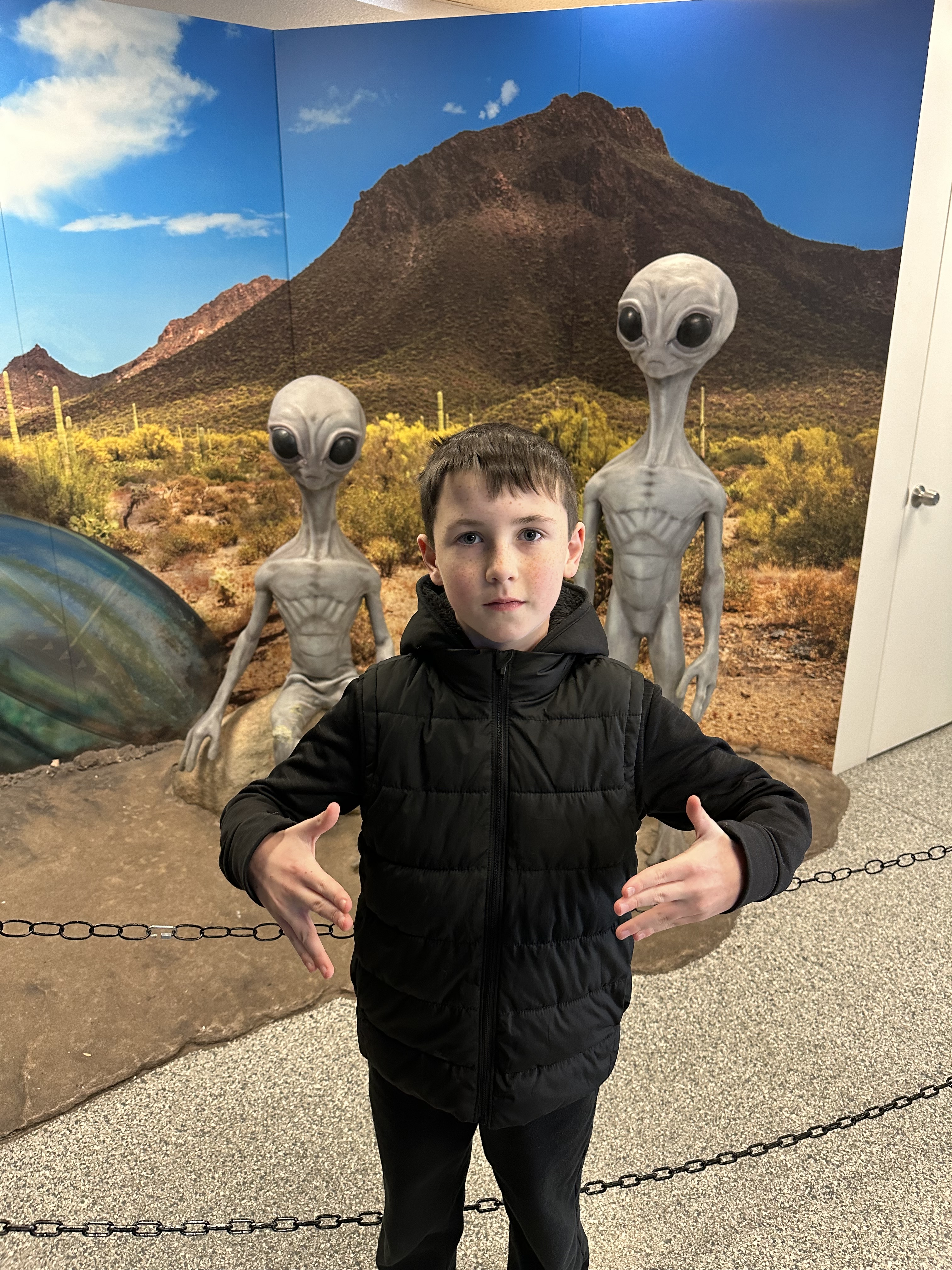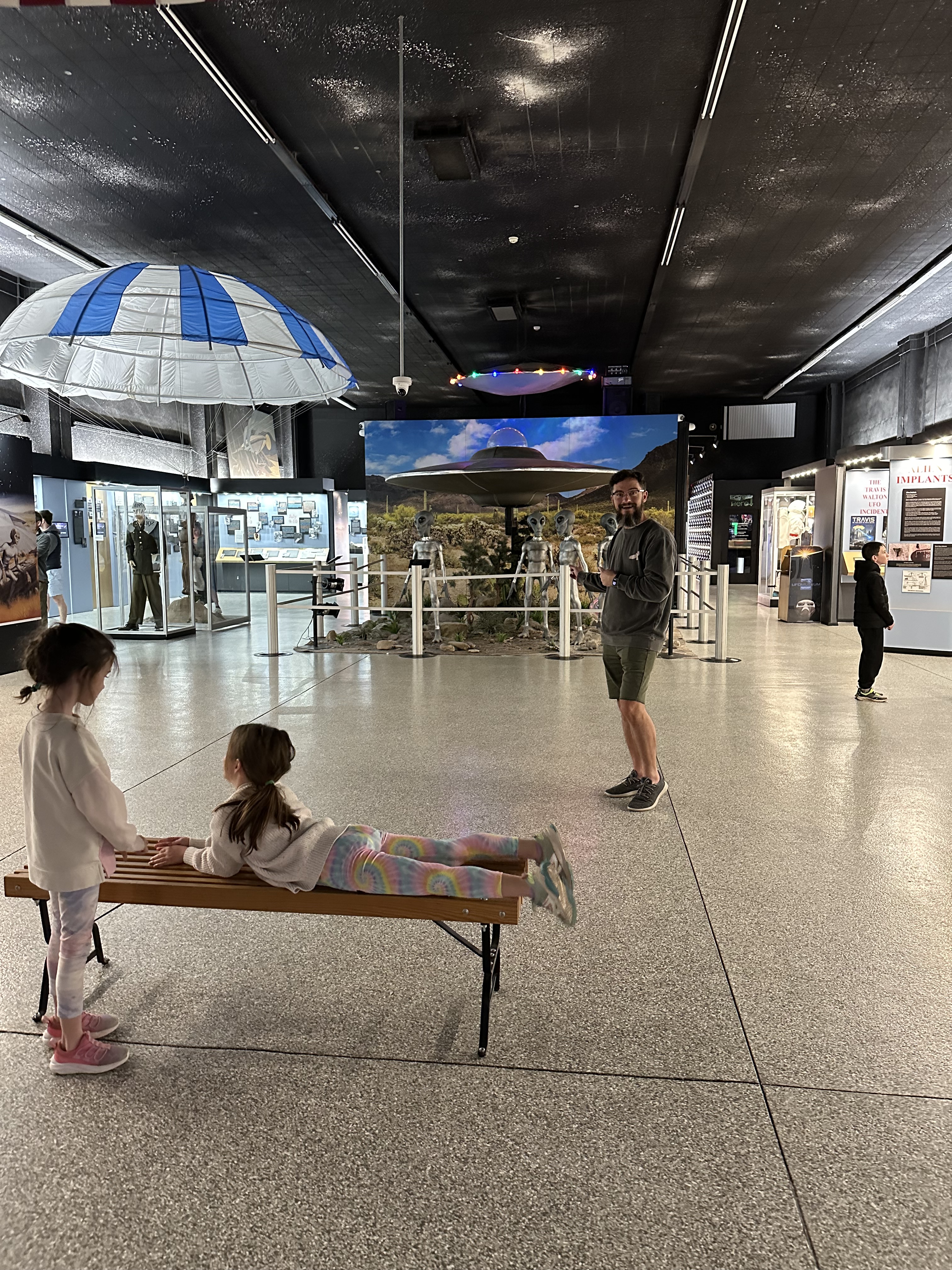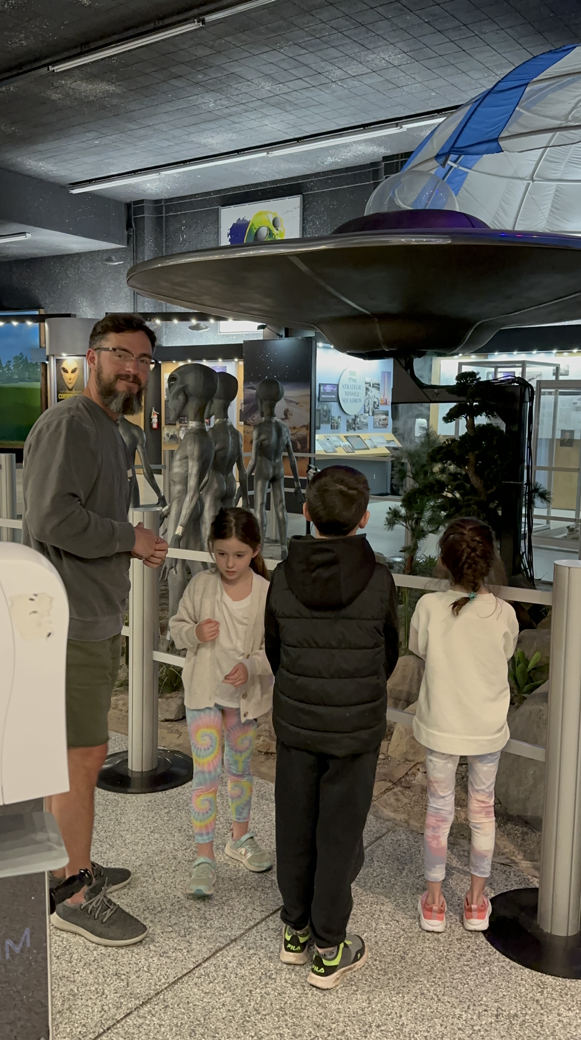Roswell takes their alien history seriously, everywhere you look are alien signs, figures, billboards and paraphernalia. Even the lamp posts have alien eyes painted on them. The McDonalds play place is shaped like a space ship. They put Cavendish’s obsession with Anne to shame. We spent our first afternoon hanging out at the International UFO Museum and Research Center. The kids enjoyed it, although, Madeline did ask after a while if we were actually going to get to see any real aliens.