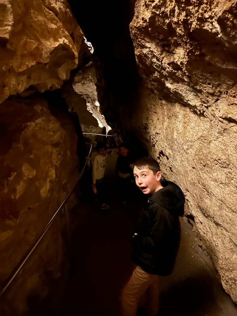 You have the option to take an elevator one or both of the ways into the cave. We opted to walk in and get taken back to the top. 20% grade downhill seems like enough of a workout to me. We definitely met some people on the way in that had made the wrong choice. At the end of the descent we could have done a different loop of the cave system, but we felt like we had seen enough stalagmites and stalactites for the day and headed out.