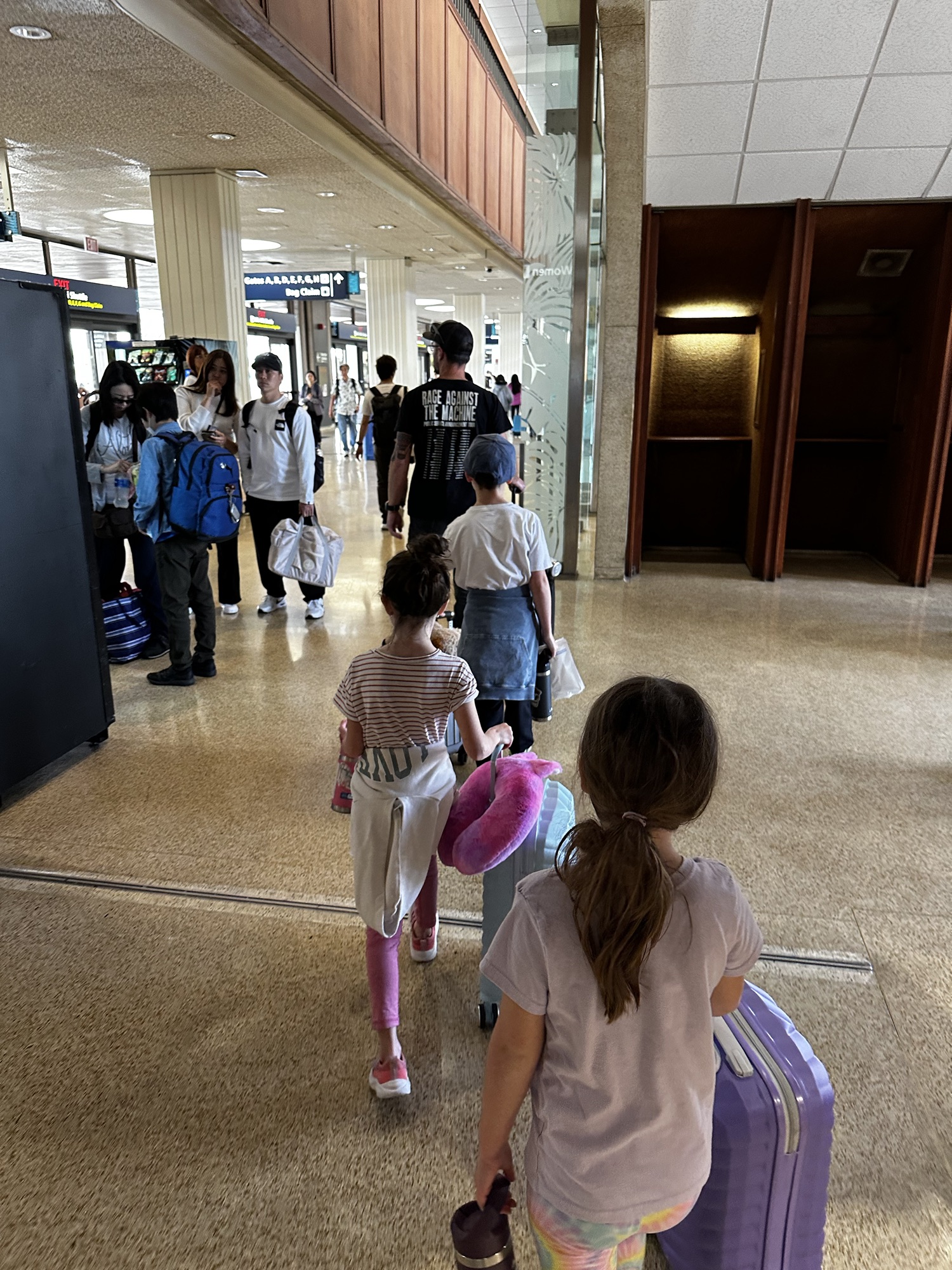 We had an early morning flight from LA to Honolulu so we dropped Roland off and got ourselves checked in to an airport hotel. The three kids settled in for a short nights sleep. We were up and at the airport with a perfect amount of time to get through security, grab a coffee and breakfast and board the flight. It was a nice change from our previous attempt at flying.