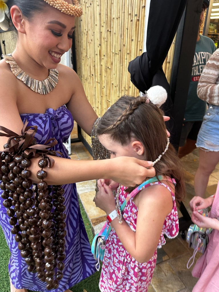 After our climb, we rewarded ourselves with a night out at a Luau! I 100% recognize that this is a very touristy activity. I also recognize that at this moment I was a tourist in Hawaii, and sometimes you just have to embrace that. The girls got all dolled up and we headed to dinner. The Luau was great! The meal was delicious – like seriously amazing – and the kids got to try all of the cultural activities and go on stage.