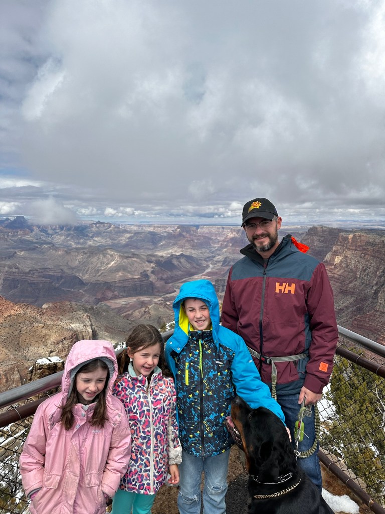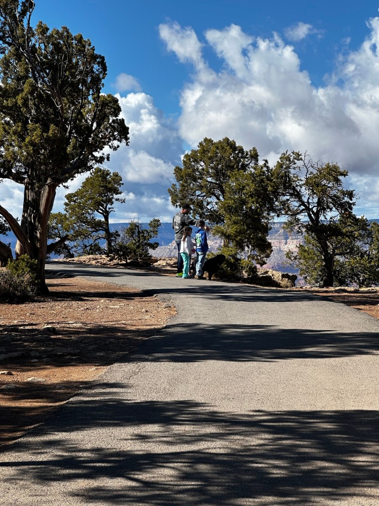 When in northern Arizona, it’s hard to justify skipping the Grand Canyon, so even though Jacob and I had both visited before, we figured we better cross it off the list for the kids, and the dog too. The north rim of the canyon is still closed, and much too far of a drive, so we spent our time on the south rim. We entered the park on the east side and made our way across stopping off at some spectacular viewpoints. Unfortunately, they had recently had some snow, so we couldn’t hike into the canyon – muddy and icy winding paths into a canyon doesn’t really appeal to me.