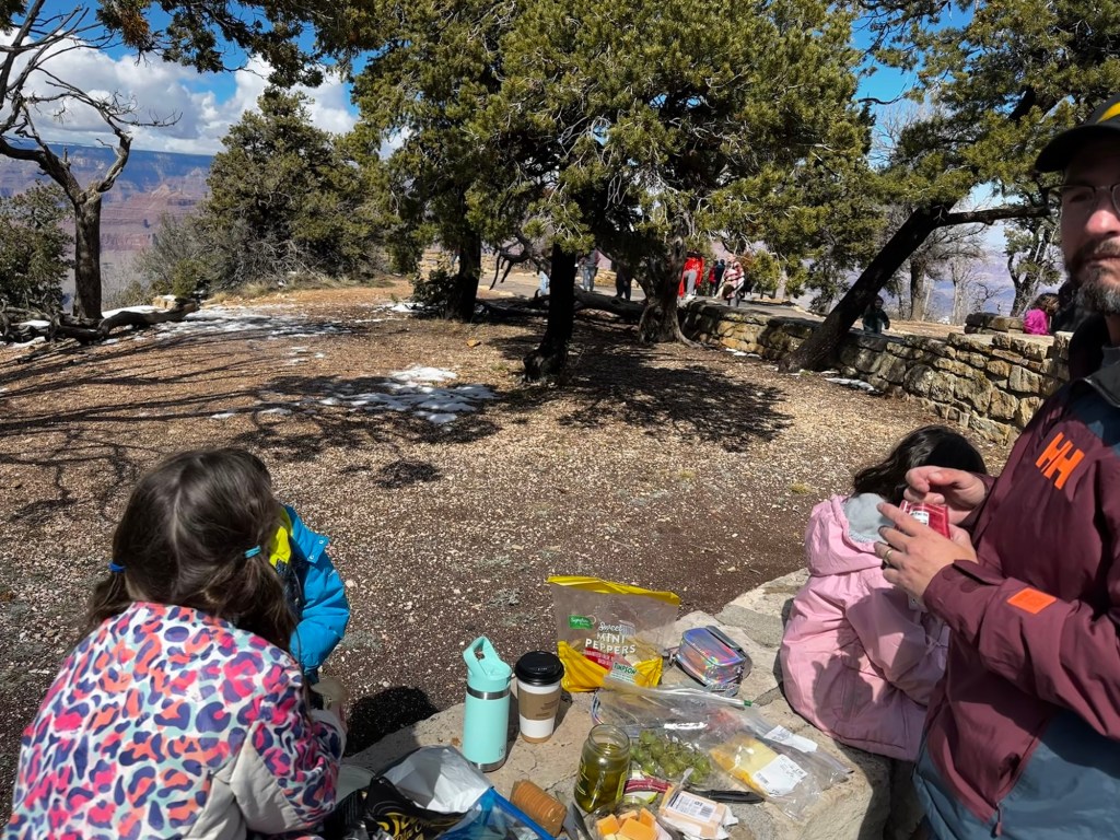 We have finally gotten the hang of this national park business, well as much as we can, since they all seem to have completely different levels of service, and have started packing picnic lunches always. We snagged a great spot for a snack, enjoyed our lunch and view and kept heading towards the rim trail.