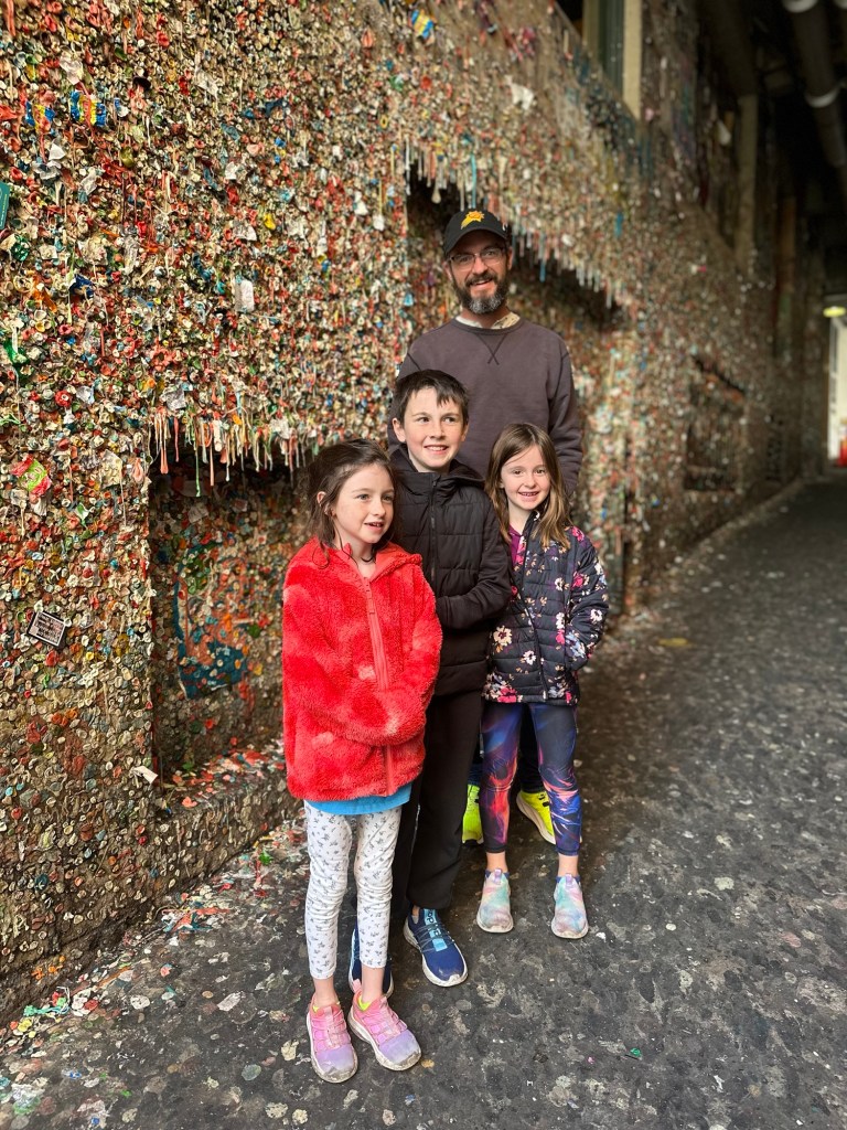 We did manage to leave West Seattle for one afternoon and head into downtown proper. We visited Pike Place Market (no we didn’t see any fish being thrown) the original Starbucks (no we didn’t wait an hour for a latte that we could get around the corner at a new Starbucks) and found the gum wall(yes, it is disgusting). We eventually made our way down to the waterfront and wandered around for awhile before we headed back to the van just in time to miss the rain.