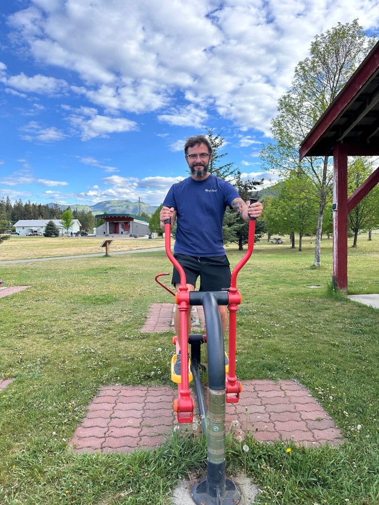 It’s a long old drive from Vancouver to Jasper, one of the longest drives we have had to do, with very little in between. It was a nice drive, even if it was long. It was pretty crazy to see all of the wild fire aftermath. We stopped for supper and a bit of time out of the van for everyone to stretch their legs and get some fresh air. They had a great park, and some outdoor exercise equipment for us to take advantage of. Jacob especially got in a great workout.