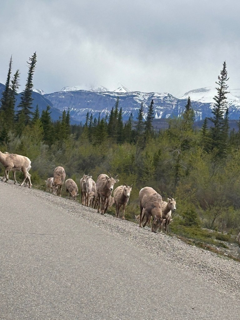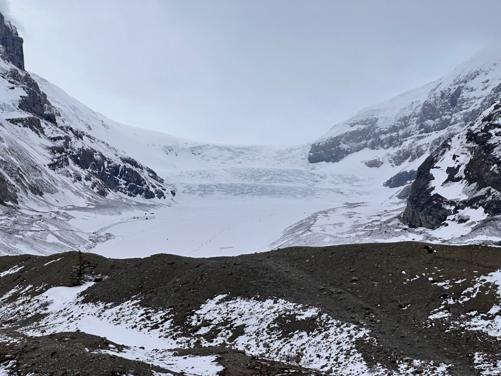 Our final day in the Rockies was spent driving from Jasper to Banff through the national park. It was absolutely stunning the whole way. We unfortunately didn’t have bright blue skies as a backdrop to the mountains but it was spectacular nonetheless. We stopped at Lake Louise excited to see the magic only to find it still snow covered.