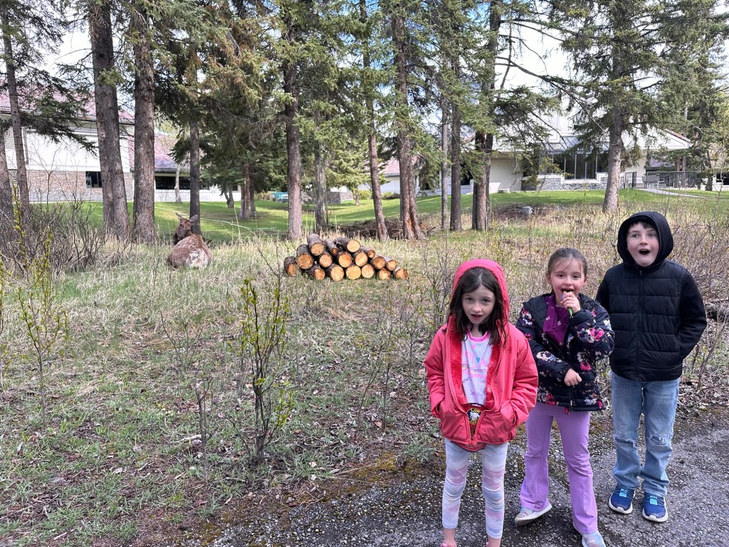 We arrived in Banff with enough time for a sandwich, a coffee, another COWS treat and a walk around the village. On the way back to the car we almost literally stumbled upon a couple of elk lounging in the shade of the trees.