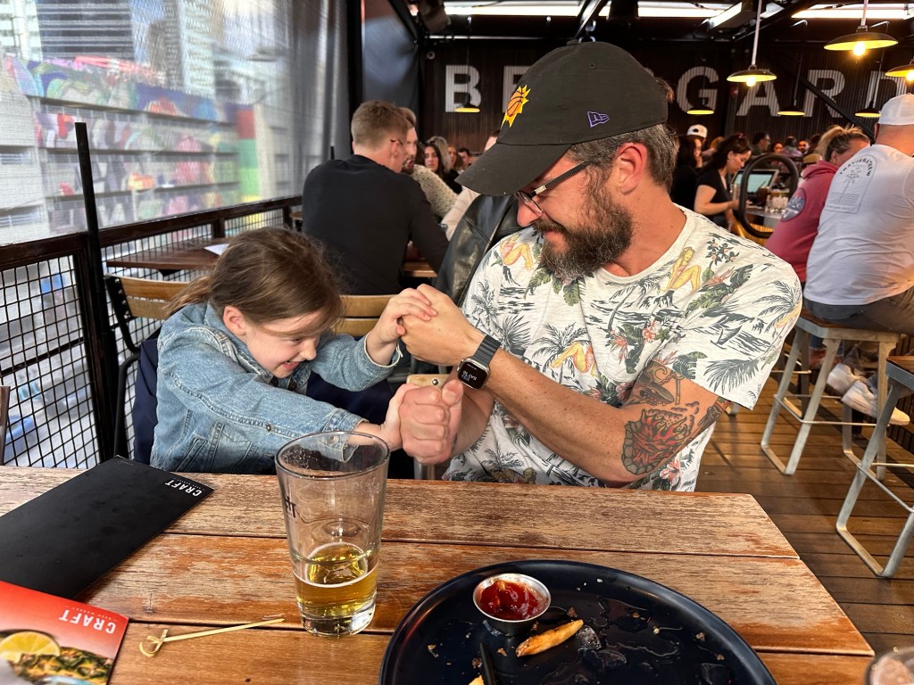 We spent our first day wandering along and across the river to the downtown. We had no real destination in mind, other than finding a spot to grab a bite to eat that was also playing the hockey game. We eventually made our way to happy hour at Rodney’s Oyster House where we had a couple of drinks and a taste of home before we headed next door for the game.