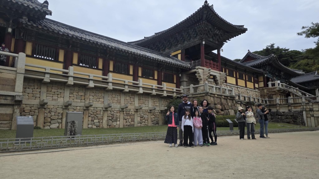 We got to spend the day with Liezl, her husband JiHwan and her two kids, Hailey and Ian. They picked us up from our hotel in their bright yellow hagwon bus and we set off for Gyeongju. This was actually a first for me and Jacob – we had never traveled anywhere by private vehicle when we lived there, relying only on public transit. It was a completely different experience to see Korea from the highway and navigate the traffic and parking. I was very glad it was JiHwan and not me!