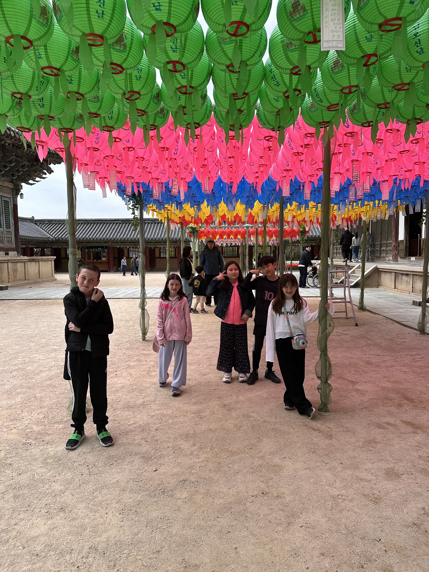 Our first stop was Bulguksa temple. It’s a particularly famous temple in the area, although there’s some debate amongst the Bachs as to why. It’s possibly the oldest, or biggest. Either way it’s set up on the top of the mountain and is quite lovely. We toured around amongst the crowds, saw the statues, and the lanterns for buddha’s upcoming birthday and made statues out of wishing rocks.