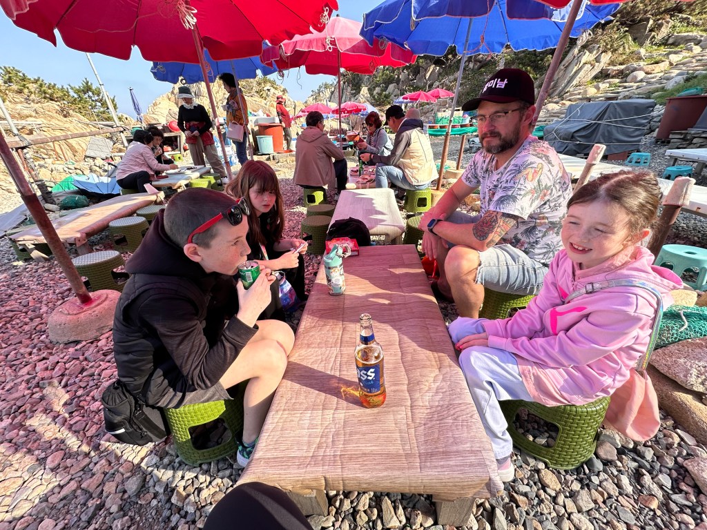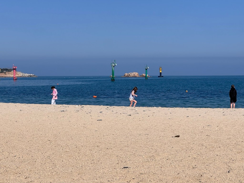 Surprisingly it seems to have changed the least of all the places we have visited. Unfortunately it was quite windy on the beach and none of us were really dressed appropriately. Fortunately, home plus hasn’t changed a bit and we were able to grab some new clothes. We grabbed a coffee, the girls collected sea glass and we enjoyed sitting in the sand. We had a quick lunch at the GS25, just like old times, and headed towards Ulgi park.